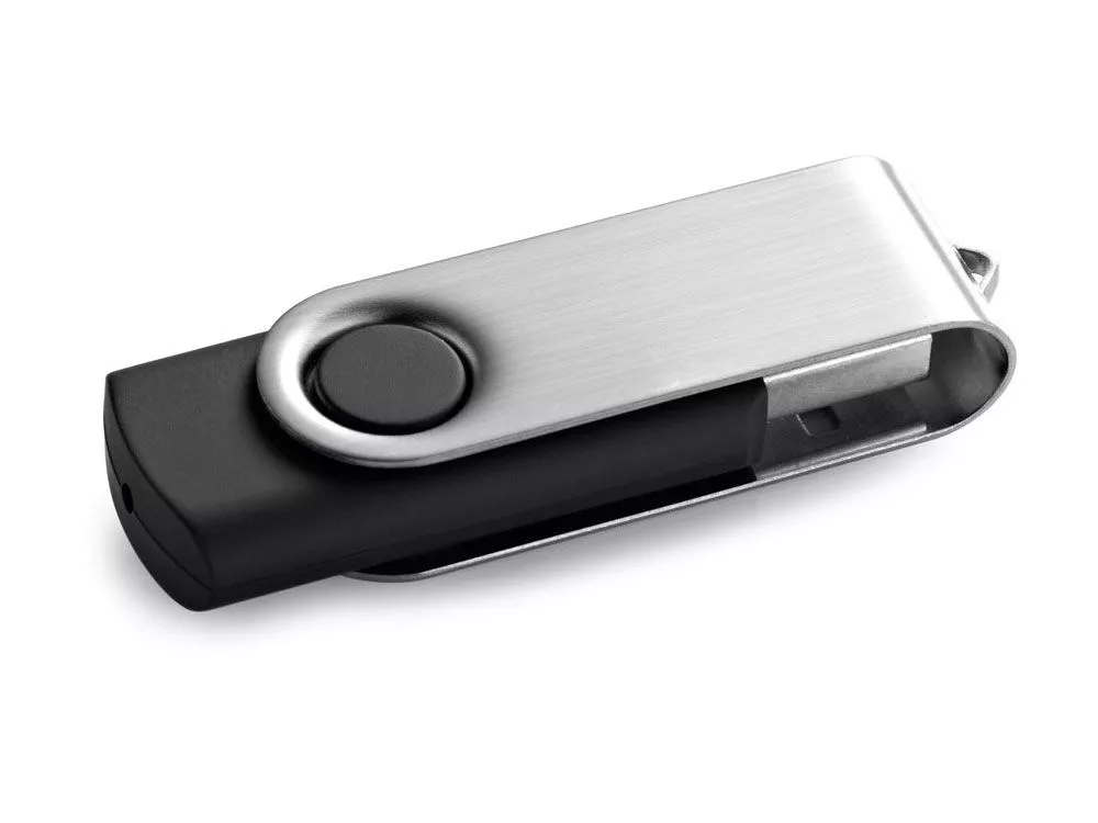 Флэшка USB на 16 ГБ с резиновым покрытием и металлическим зажимом. 56 x 19 x 10 мм. Поставляется в коробке 86 x 45 x 20 мм