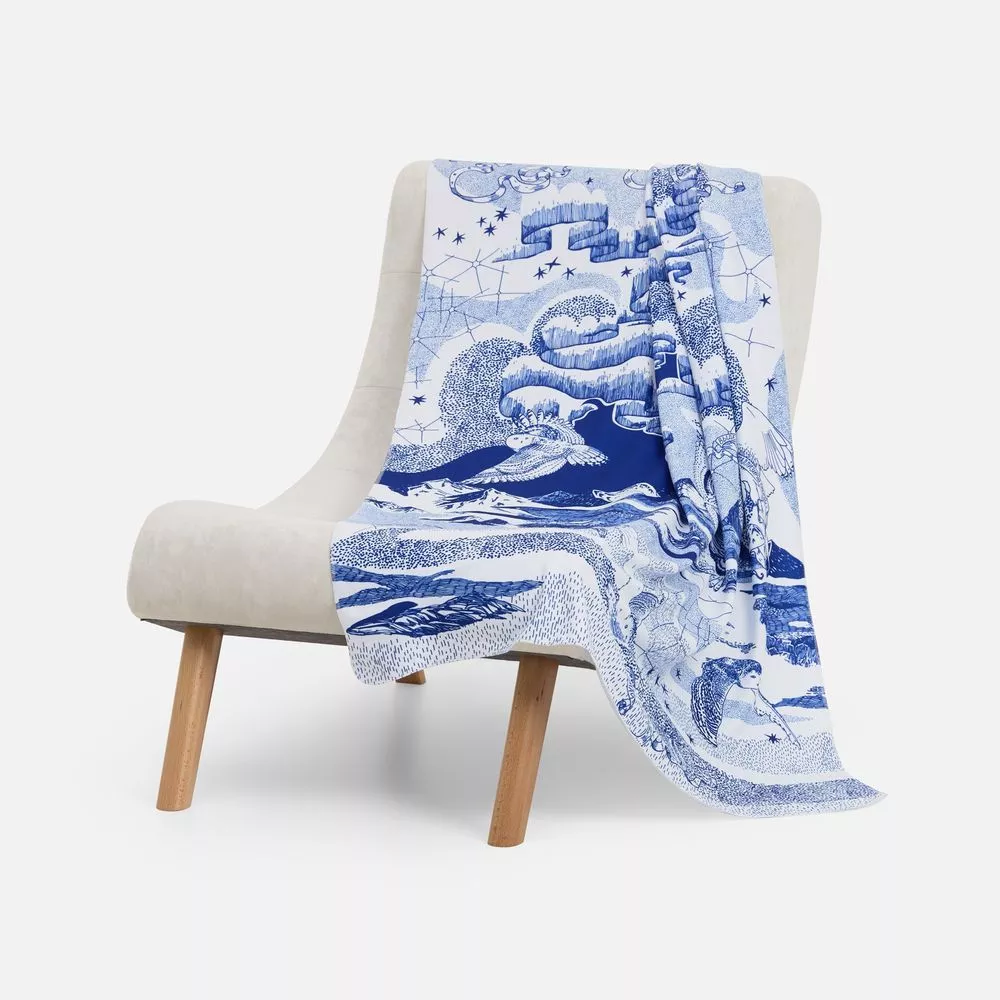 Оформление этого пледа — тоже отдельная магия, где тончайшими линиями, словно чернилами, расписано полотно. Так создается целый сюжет с чарующей историей, после которой обязательно захочется сказать: «Волшебство повсюду».