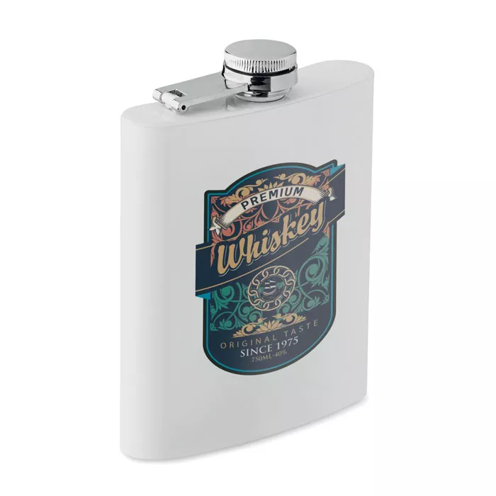 Фляга из переработанной нержавеющей стали 90% и 10% нержавеющей стали с покрытием для сублимации. Одностенная. Объем: 190 мл.