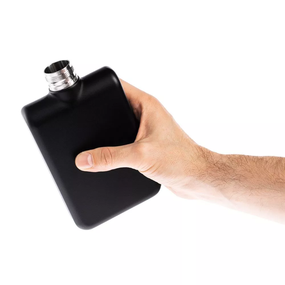 - Пищевая нержавеющая сталь: фляжка подходит для алкоголя и воды