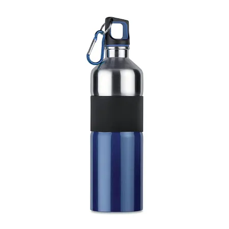 Фляга питьевая двухцветная из нержавеющей стали с резиновым обхватом и карабином. Объем 750 мл.