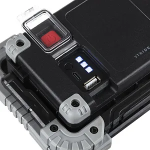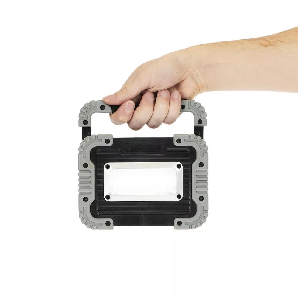 Мощный аккумуляторный фонарь для кемпинга, дачных выездов и строительных работ. Вращающаяся на 180° ручка позволяет зафиксировать фонарь в нужном положении. Встроенный аккумулятор имеет выход USB, который позволяет использовать фонарь в качестве источника питания для зарядки телефона.