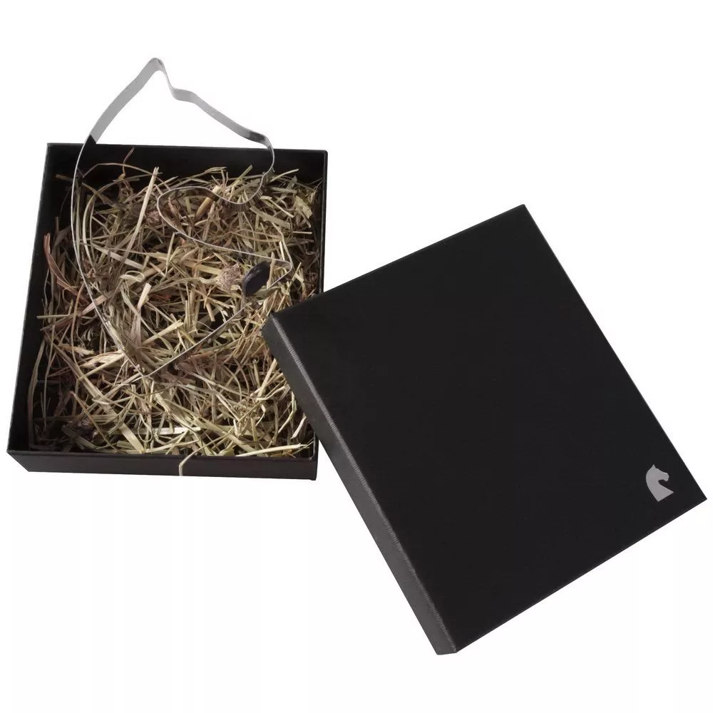 - дополнена дизайнерской упаковкой с оригинальным наполнителем – экологически чистым сеном