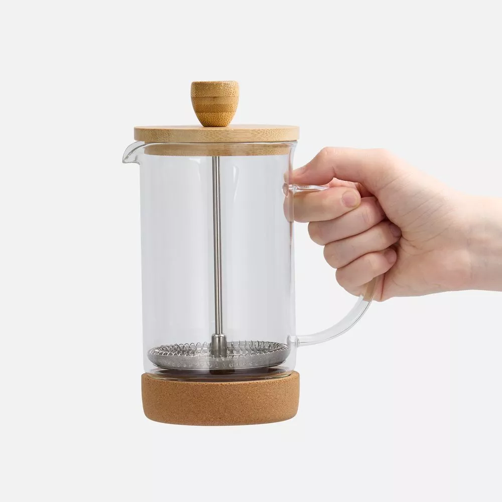 Прозрачное боросиликатное стекло позволяет легко контролировать процесс заваривания, а натуральная деревянная крышка и пробковая подставка добавляют изделию стиля и практичности, подчеркивая приверженность к экологичным мотивам. Эргономичная ручка и продуманный дизайн делают каждое утро приятным ритуалом, а название Morning Person напоминает: этот аксессуар создан для тех, кто встречает день с энергией и вдохновением.