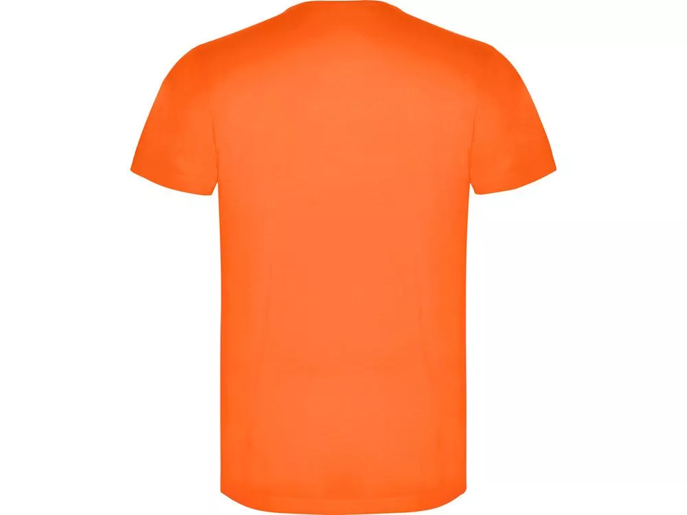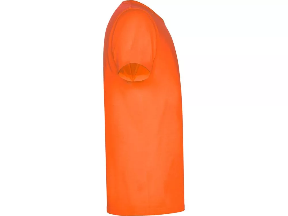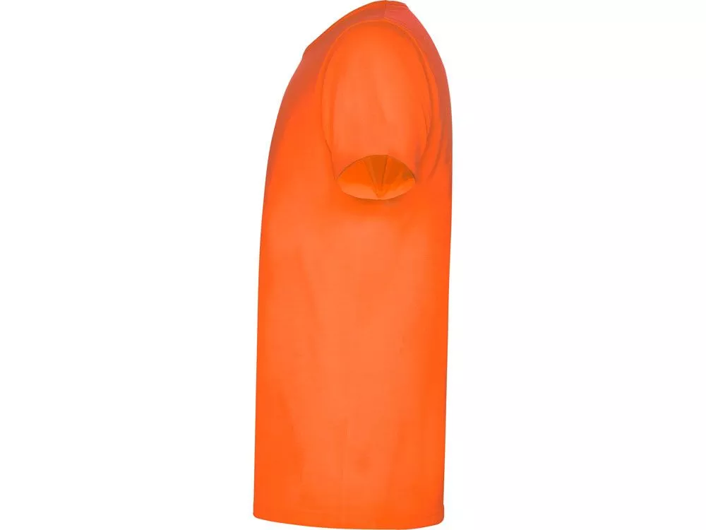 Футболка с коротким рукавом и круглым вырезом горловины. Модель в неоновых цветах выполнена из полиэстера, на ощупь напоминающего хлопок.