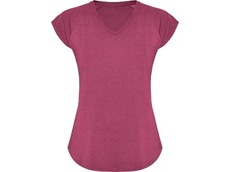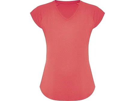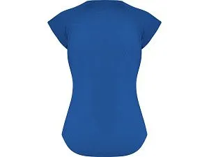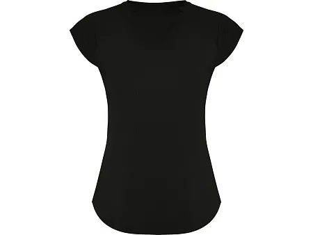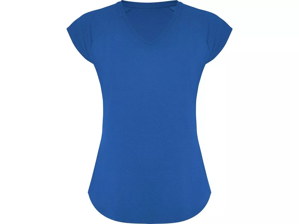 Спортивная женская футболка с коротким рукавом реглан. Вырез горловины V. Полотно из полиэстера на ощупь напоминающее хлопок. Приталенный силуэт.
