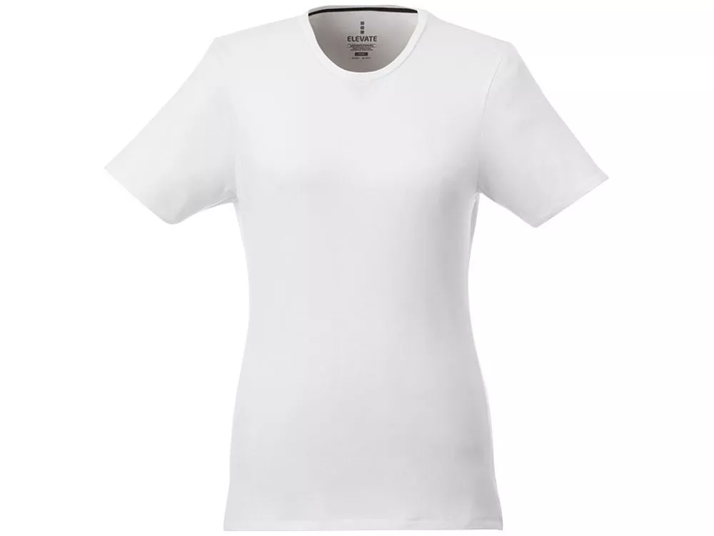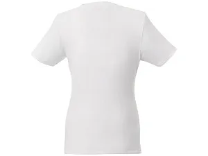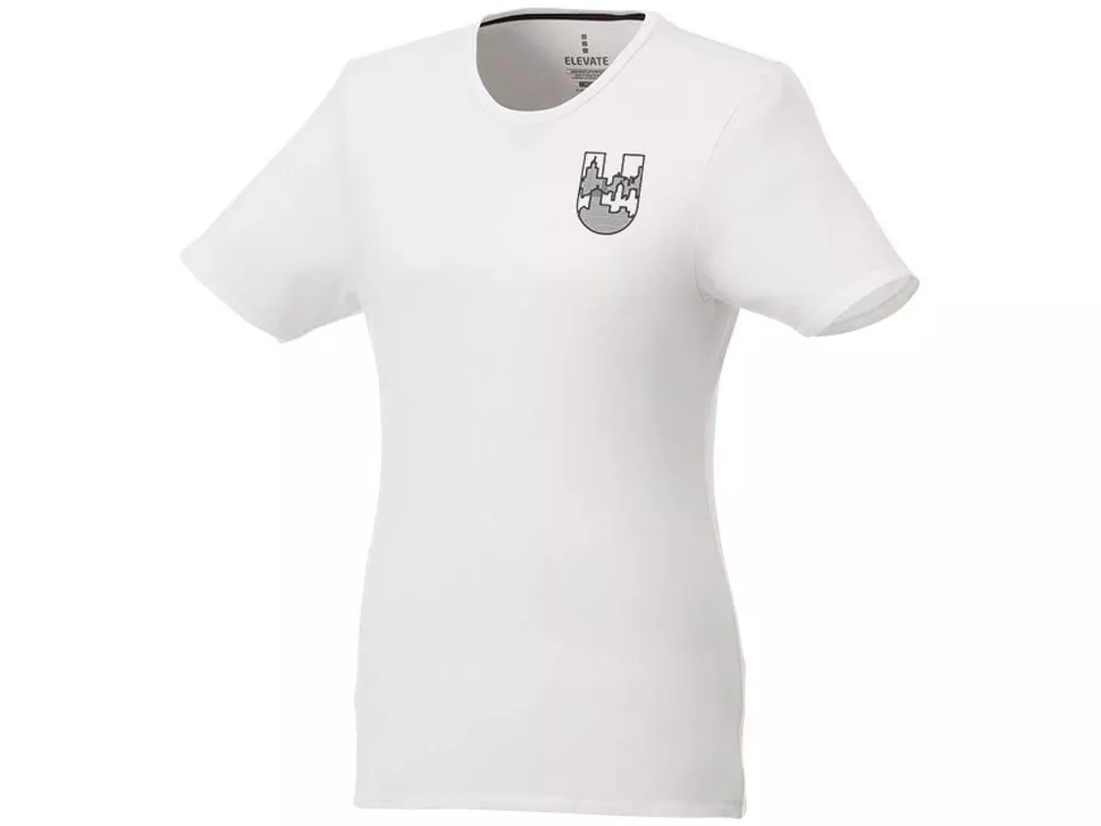 Женская футболка Balfour с коротким рукавом из органического материала. Воротник из ткани изделия. Круглый вырез горловины. Стрейтч-ткань. Двойная строчка на воротнике и внизу изделия. Атласная лента от плеча к плечу. Комфортный ярлык-трансфер на изделии. Одинарный джерси 95% GOTS certified organic cotton, 5% Эластан, 200 g/m2.