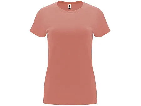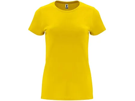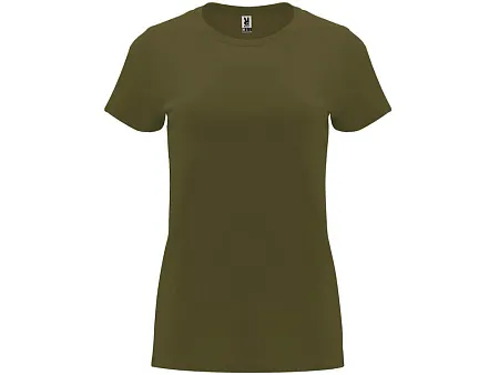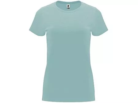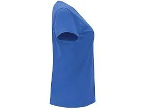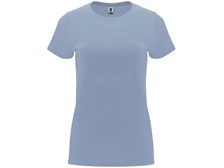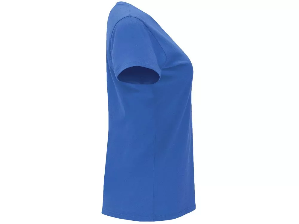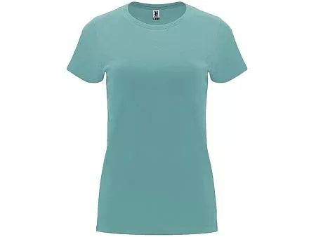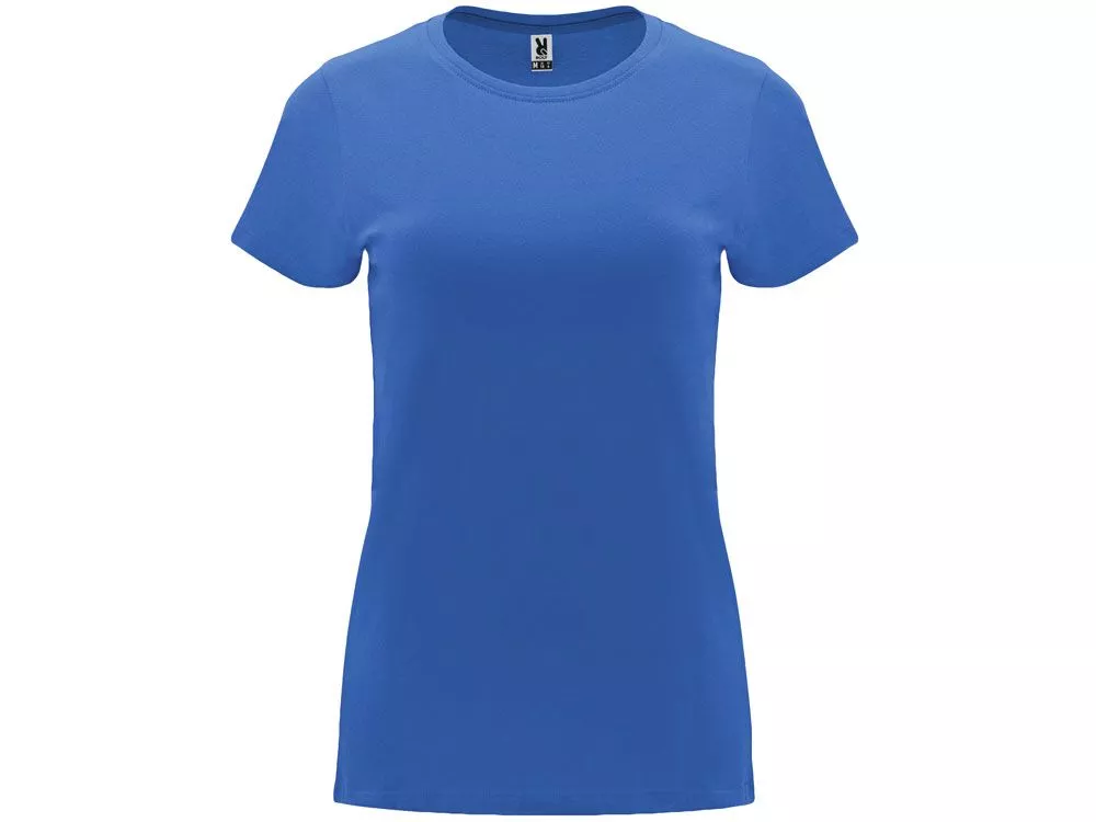 Женская приталенная футболка. Круглый вырез горловины обработан рибом 1х1. Шов горловины укреплен тесьмой.