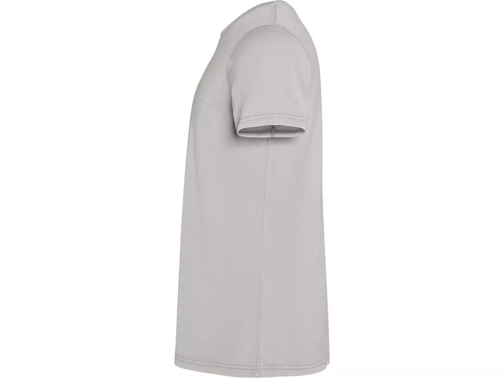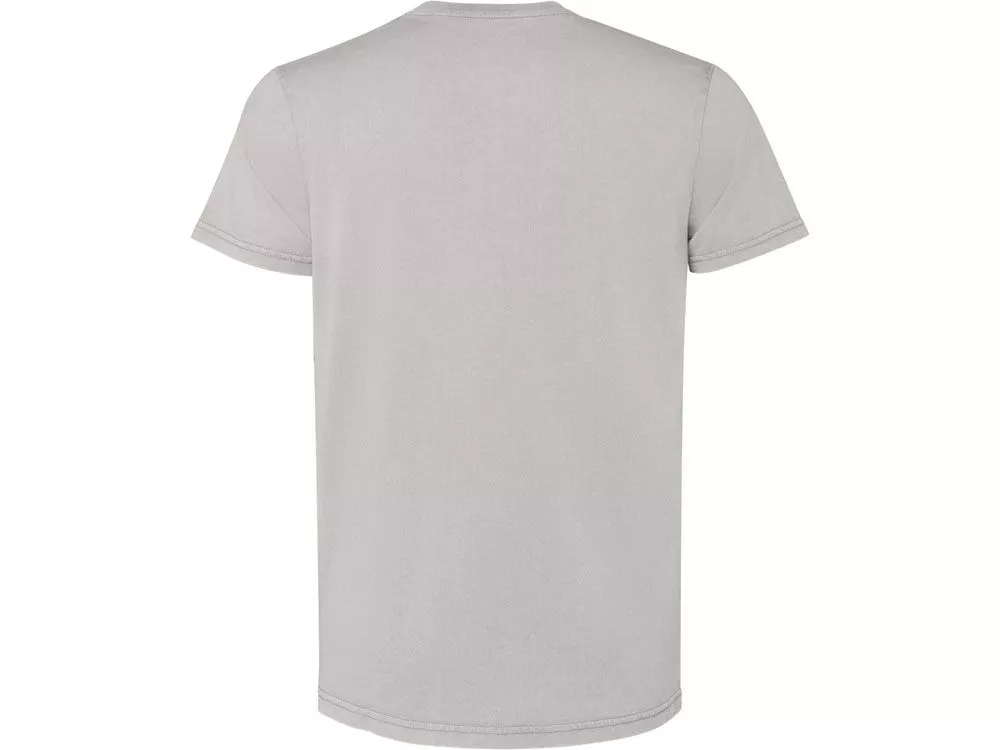 Мужская футболка с коротким рукавом из 100% хлопка с аксидной стиркой. Круглый вырез горловины из риба 1х1. Отстрочка в тон по горловине.
