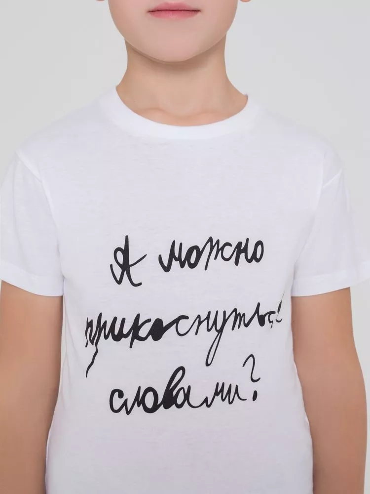 Радостно видеть, как из наброска, меткой фразы рождаются реальные вещи, как идея обретает форму. Для студентов творческих мастерских «Антон тут рядом» это не только очень приятно, но и невероятно важно — часть средств, полученных от продажи изделий, идет на поддержку работы Центра.Классическая кроеная футболка с боковыми швами и укрепляющей тесьмой по вороту. Край ворота в резинку с эластаном.