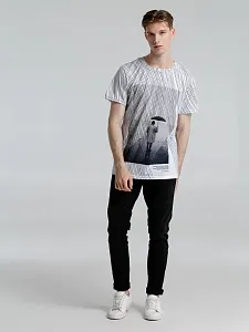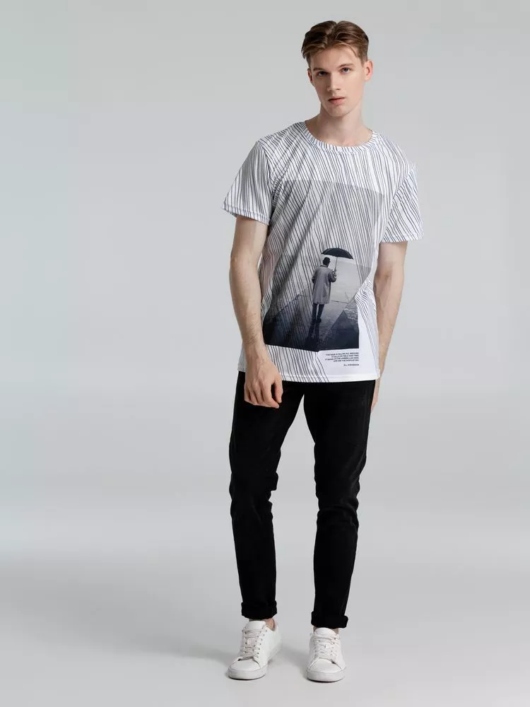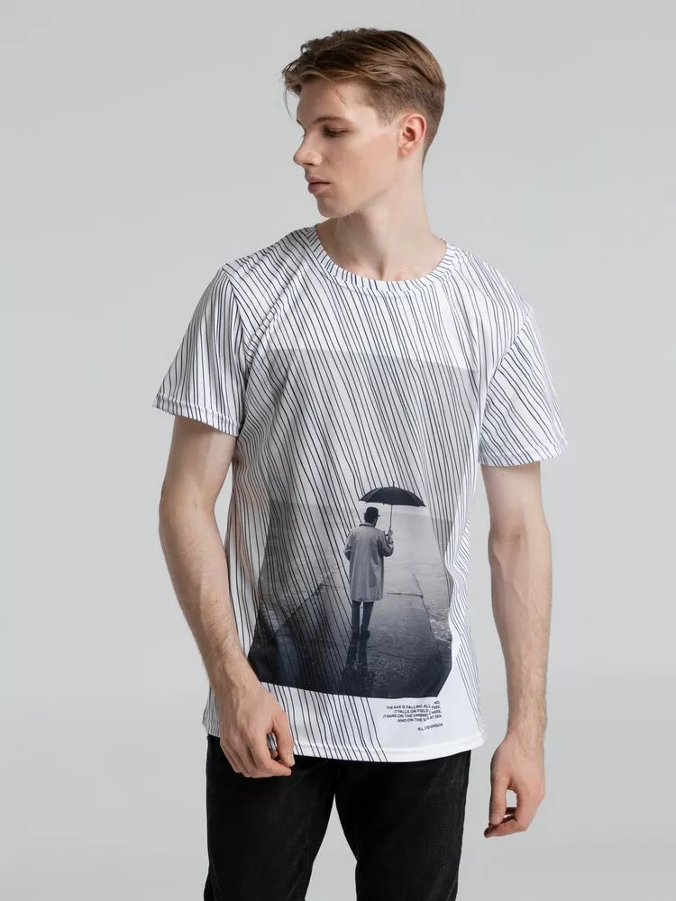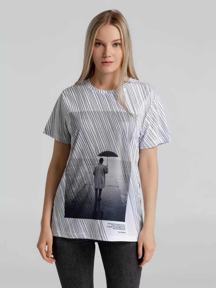 Затяжной ливень заполняет собой все пространство длинными линиями, словно строчки стихов белые страницы. Дождь — это поэзия природы. Футболка с эпиграфом.Футболка унисекс оверсайз. Окантовка горловины из основного полотна.