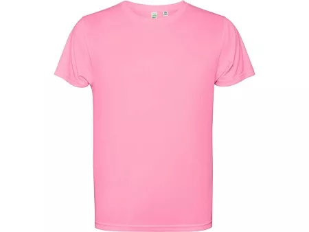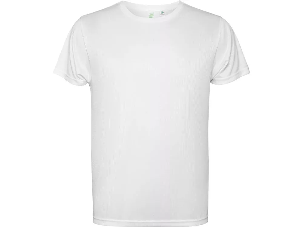 Детская футболка с коротким рукавом из технологичного полотна. Отстрочки в тон. Спинка с удлинением. Боковые швы со смещением вперед.