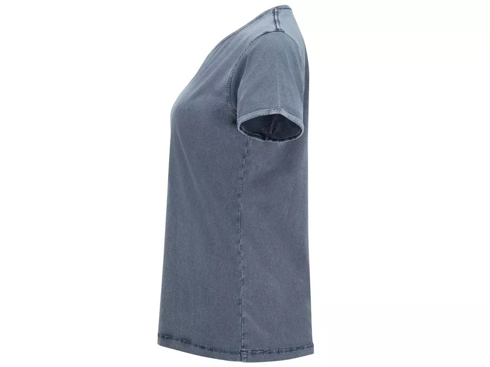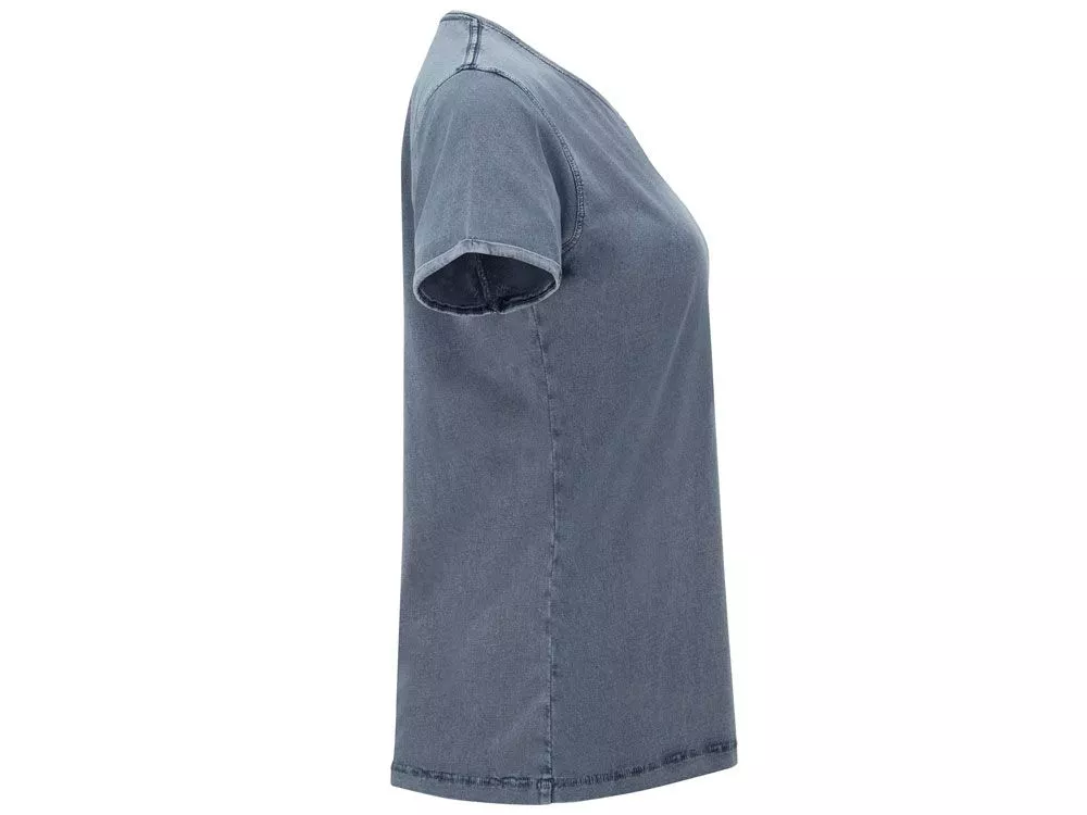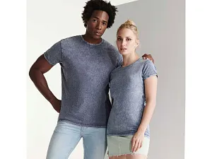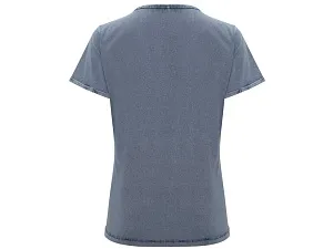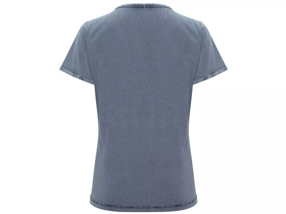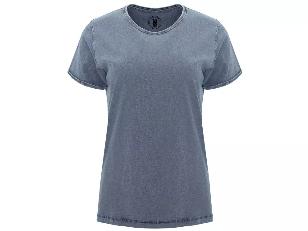 Женская футболка с джинсовым эффектом. Короткий рукав, горловина обработана рибом 1х1 и дополнительно укреплена тесьмой. Двойная отстрочка по пройме. Рукав с закручивающимся краем. В ассортименте также представлена аналогичная мужская модель Husky