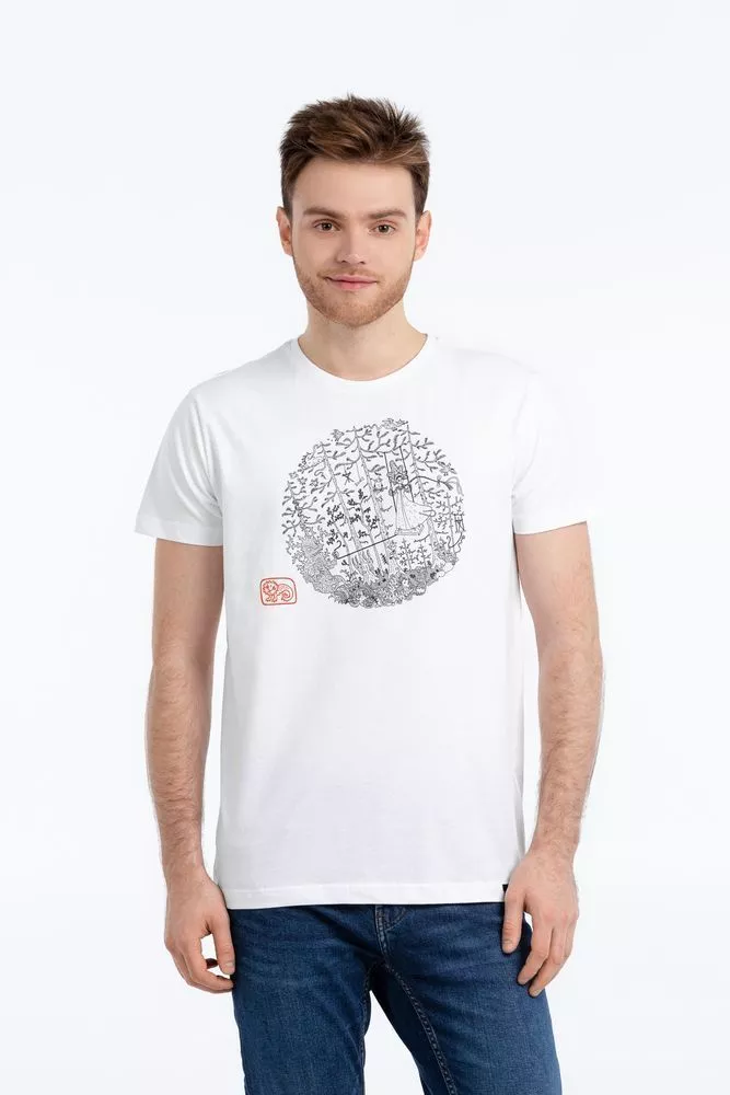 Для бренда AUTHOR`S Феликс Данкевич специально адаптировал несколько работ из своих графических циклов «Жизнь мха» и «Русское богатство», сказочных и причудливых.Мужская футболка с круглым вырезом. Двухслойная резинка предохраняет воротник от деформации после стирки.