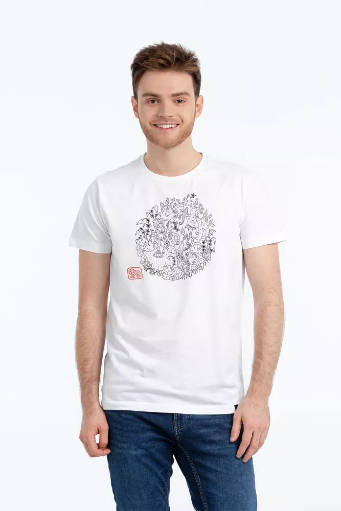 Для бренда AUTHOR`S Феликс Данкевич специально адаптировал несколько работ из своих графических циклов «Жизнь мха» и «Русское богатство», сказочных и причудливых.Мужская футболка с круглым вырезом. Двухслойная резинка предохраняет воротник от деформации после стирки.