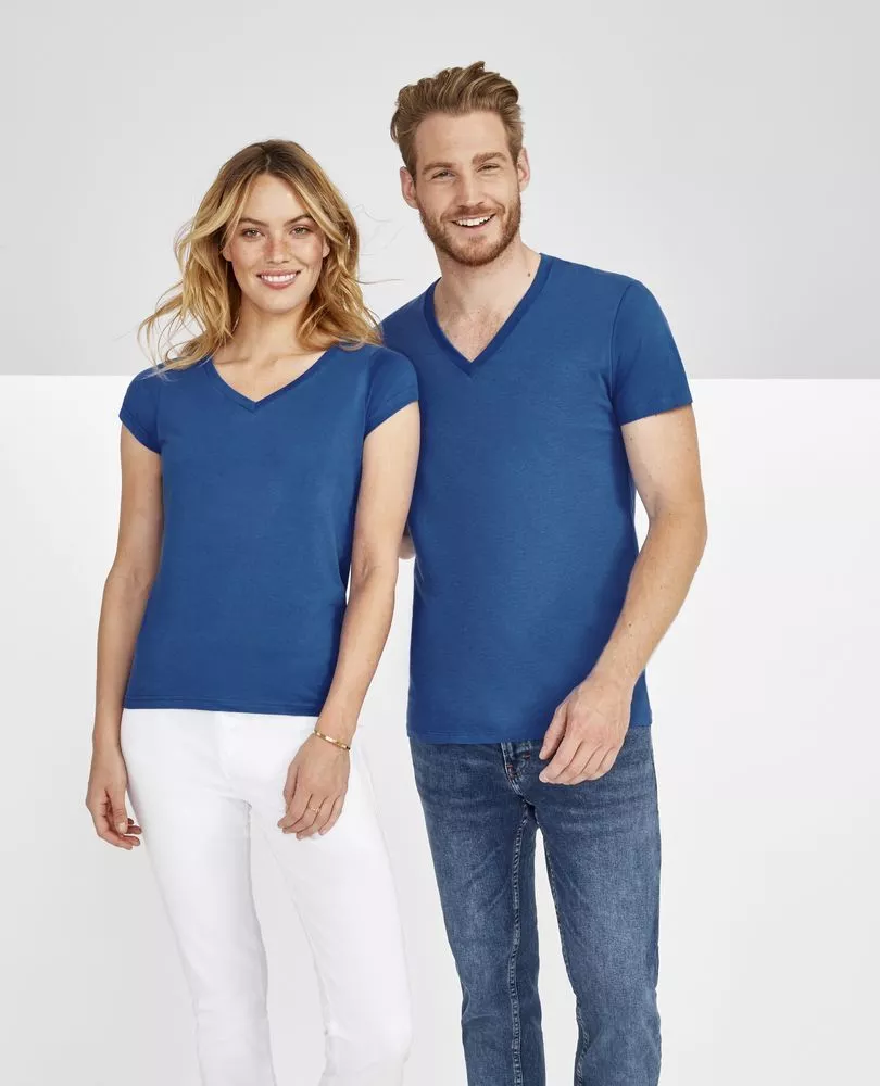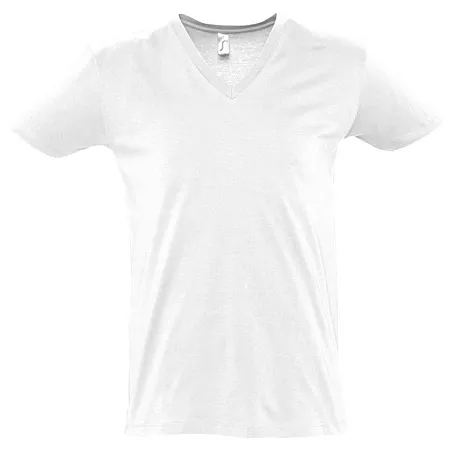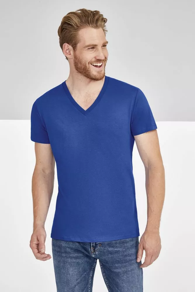 Модная мужская футболка с глубоким V-образным вырезом, отделанным резинкой 1*1, подойдет как для промо-акций, так и в качестве корпоративной униформы. Полугребенной 100% хлопок, двойная прострочка на рукавах и по низу изделия, укрепляющая тесьма по вороту. Таблица размеров: