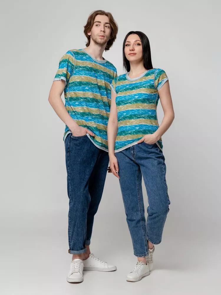 Двусторонняя футболка с круглым вырезом и плоскими швами.
