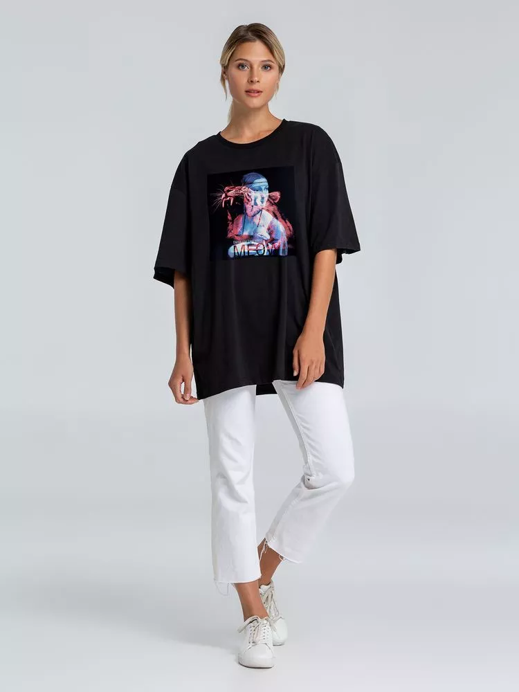 Плох тот горностай, что не мечтает стать тигром! Оверсайз футболка о том, что мечтать надо по-крупному!Футболка унисекс со спущенным плечом и круглым вырезом, отделанным резинкой.