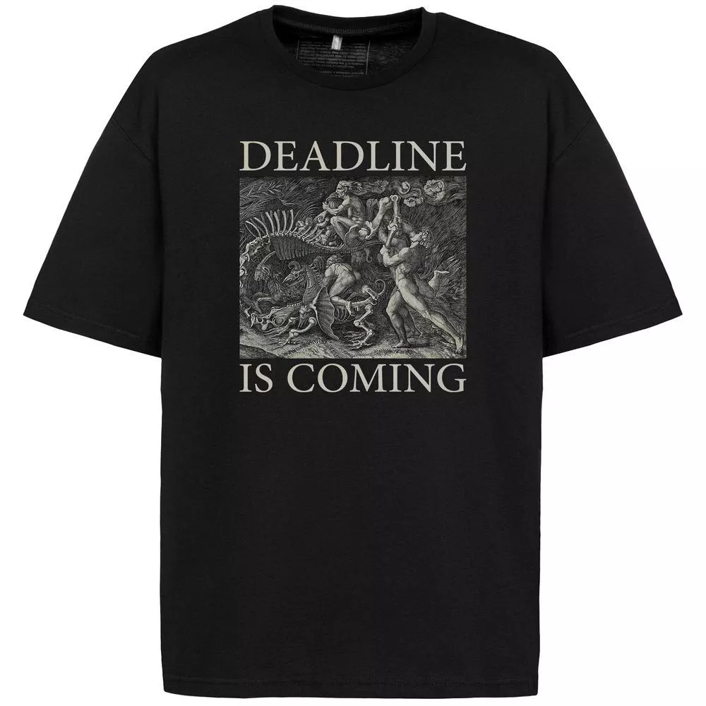 «Дедлайн горит, заказчик плачет...», — как же это до боли знакомо! Ситуации приближающегося неизбежного бедствия посвящен принт Deadline is Coming, в основу которого лег фрагмент средневековой гравюры итальянского художника Агостино Венециано «Колдовство».