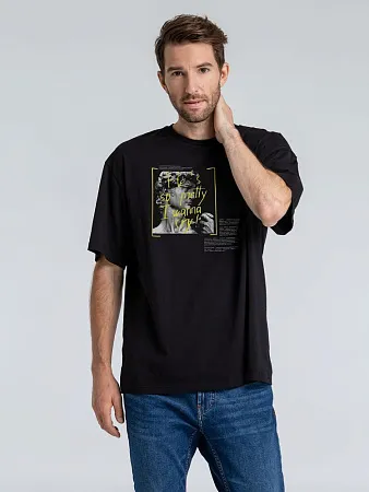 Футболка унисекс со спущенным плечом и круглым вырезом, отделанным резинкой.