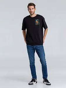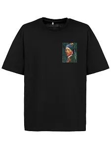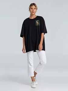 Футболка унисекс со спущенным плечом и круглым вырезом, отделанным резинкой.