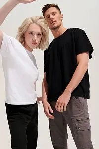 Футболка оверсайз унисекс с круглым вырезом и без боковых швов. Выполнена из смеси органического и обычного хлопка. Благодаря повышенной плотности отлично держит форму.