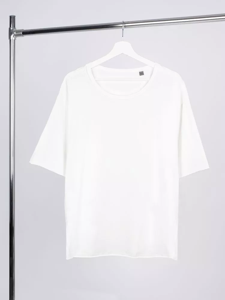 Футболка унисекс свободной посадки Vozduh создана для тех, кто следит за трендами и ценит комфорт. Необработанные края рукавов и низа изделия добавляют ему оригинальности и легкой небрежности, а боковые вставки создают притягательный летящий силуэт.
