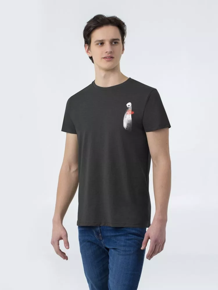 Кроеная футболка (с боковыми швами). Приталенная облегающая модель, зауженный книзу рукав, укрепляющая тесьма по вороту, воротник связан резинкой с эластаном.