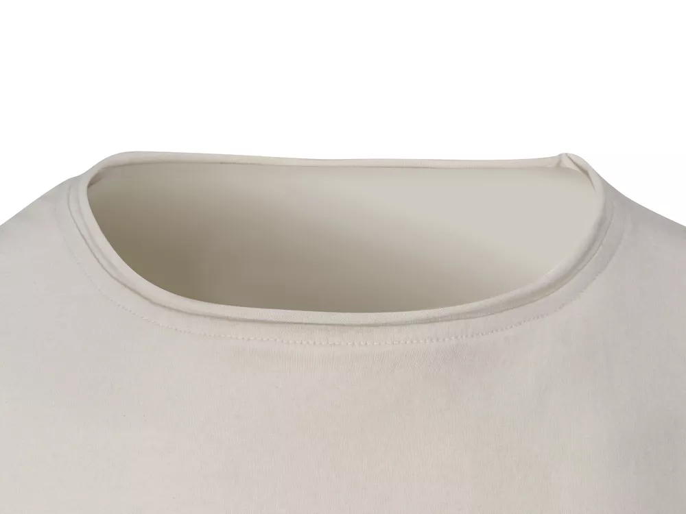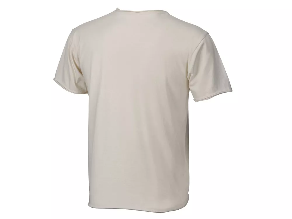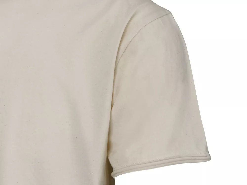 Современная футболка из натурального, неотбеленного хлопка. Без боковых швов - отлично подходит для нанесения. Горловина, рукава и низ выполнены с декоративной отделкой.