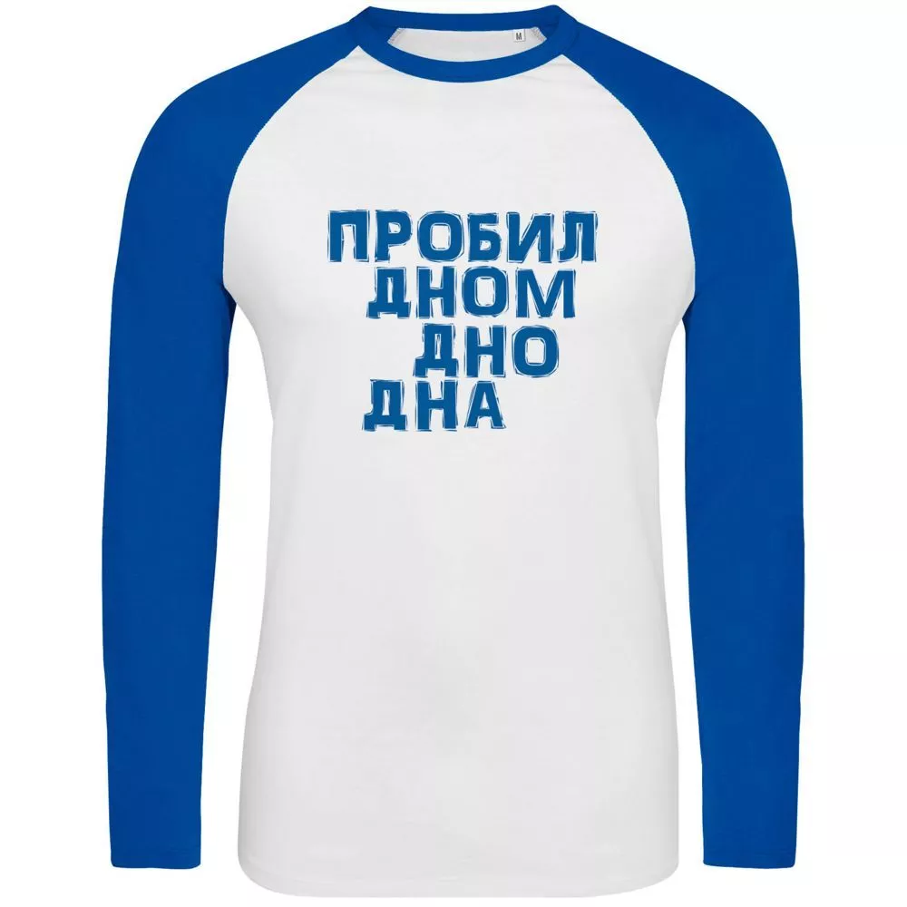 Мужская двухцветная футболка с боковыми швами, длинным рукавом реглан и закругленным низом.
