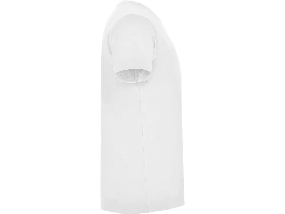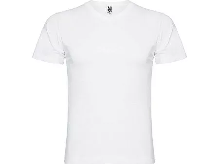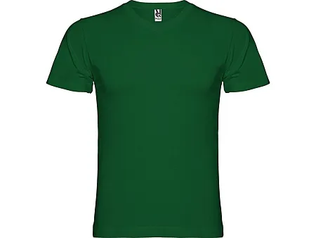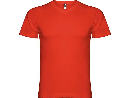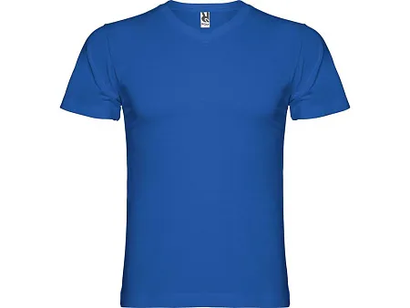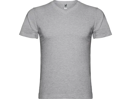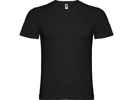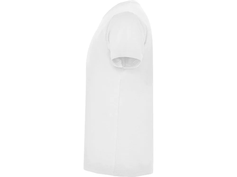 Мужская футболка без боковых швов с коротким рукавом и V-образным вырезом горловины, отделанном рибом 1х1. Горловина и плечевые швы дополнительно укреплены тесьмой.