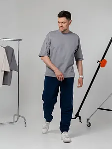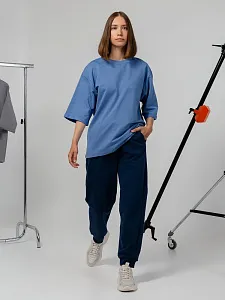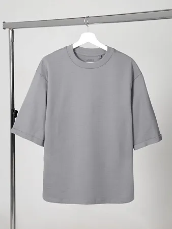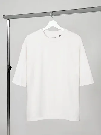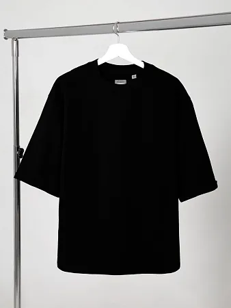 Описание Футболка унисекс свободного кроя со спущенным плечом и смещенными плечевыми швами.Воротник рибана тон в тонРукава с подворотамиУкрепляющая тесьма по вороту