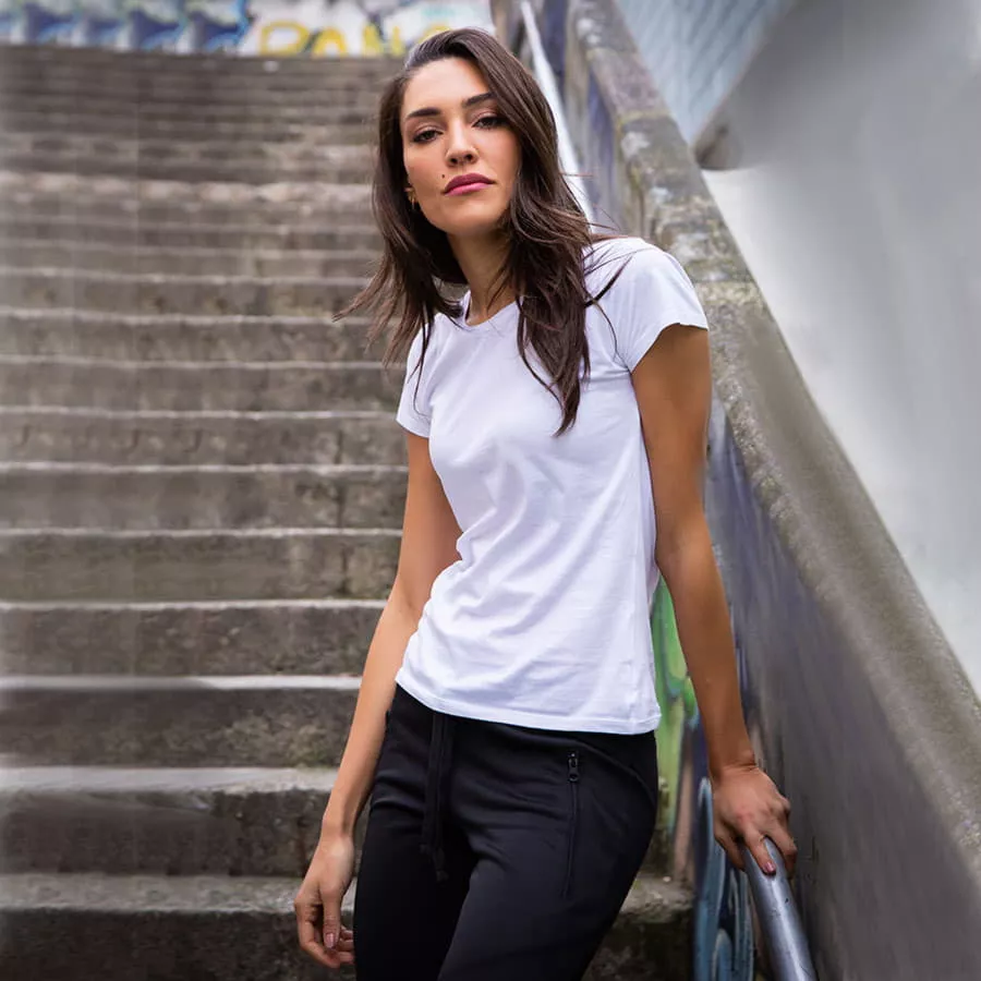 Основная ткань: цвет, близкий к Pantone 11-0601 TCX, ткань отделки (бейка): цвет, близкий к Pantone 651 C Итальянские женские футболки Сalifornia Lady бренда JRC выполнены из 100% чесаного хлопка (англ. сombed cotton) – чрезвычайно мягкого варианта хлопка, изготовленного путем специальной обработки хлопковых волокон. В процессе производства чесаного хлопка удаляются любые загрязнения, пух и самые короткие волокна, а самые здоровые, длинные и тонкие оставляются. После подобной обработки пряжа становится тоньше, ровнее и крепче, что делает футболку Сalifornia более износостойкой. Благодаря отсутствию пуха в процессе носки пряжа не пушится, а само изделие не покрывается катышками. Кроме того, футболка невероятно мягкая, так как в составе пряжи нет коротких волокон, которые могут торчать и колоться, а оставшиеся длинные волокна лежат ближе одно к другому. Так как дизайн и лекала футболки Сalifornia разработаны в Италии, сама модель соответствует всем канонам повседневной моды: * Приталенный крой выгодно подчеркивает достоинства фигуры * Аккуратная горловина обработана изящным рибом 1*1 шириной 0,8 см на манер модных футболок из розничных магазинов * Особая изюминка этой модели – бейка по горловине спинки из ткани Oxford нежно-голубого цвета. Материал, узор которого напоминает тростниковую корзину, появился еще в XIX веке в Шотландии, и с тех пор традиционно используется для пошива мужских сорочек. В данном случае, бейка на футболке является не только неброским аксессуаром этой модели, но и обладает повышенной прочностью, долговечностью и износоустойчивостью, защищая горловину от потертостей и загрязнения. Мы живем с вами в новом удивительном мире, где простая футболка с легкостью заменяет классическую рубашку. Но в знак уважения к этому предмету гардероба, маленький декоративный элемент в виде бейки по горловине спинки на футболке будет напоминать нам о том, что джентльменом или леди можно быть априори, невзирая на устои привилегированных слоев общества викторианской эпохи.