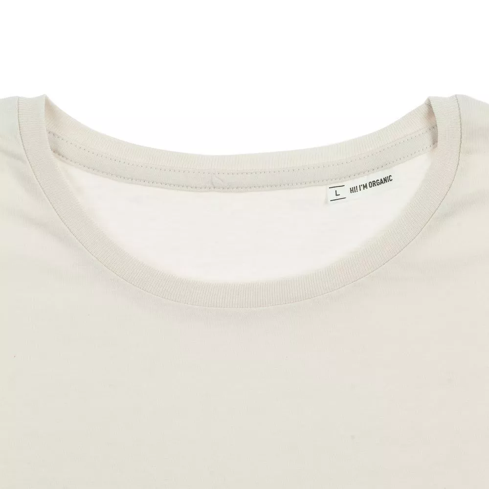 Кроеная футболка из органического хлопка. Круглый вырез отделан резинкой.