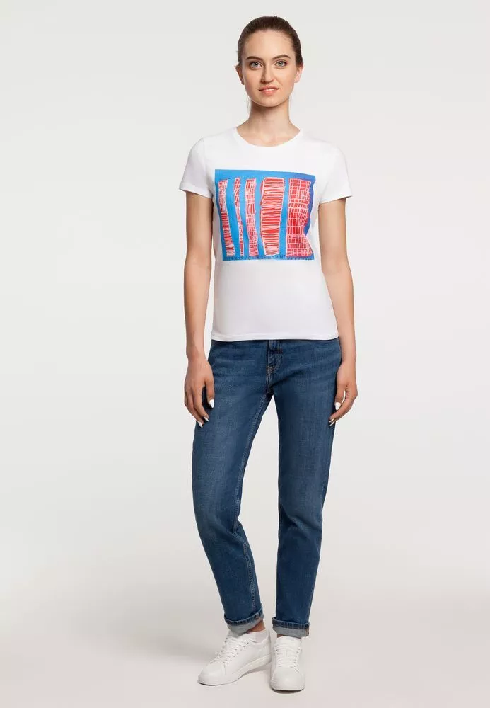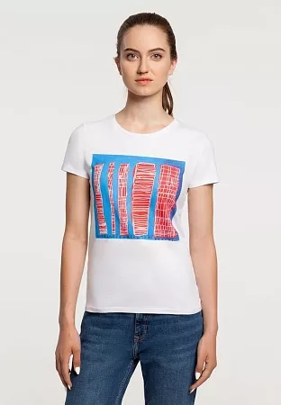 Кроеная футболка приталенного силуэта с круглым вырезом.