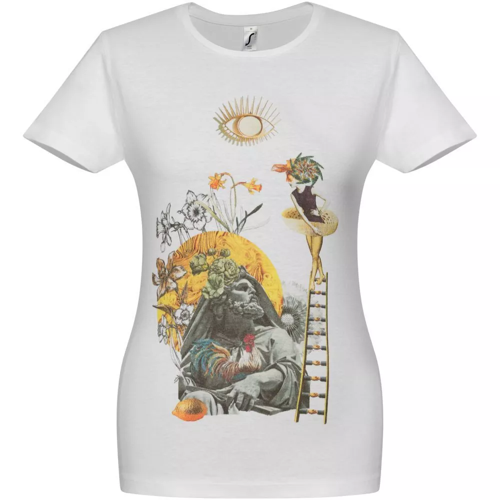 Кроеная футболка с боковыми швами и тонким воротом из джерси. Укрепляющая тесьма по вороту.