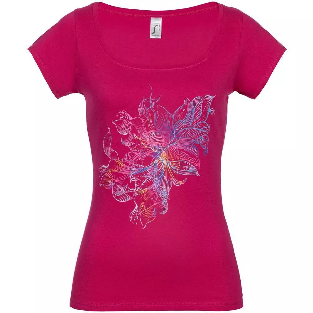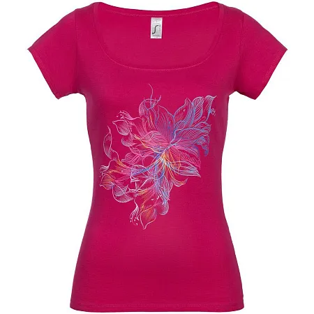 Футболка женственного приталенного силуэта с американской проймой и глубоким вырезом, отделанным обтачкой из джерси. Двойная прострочка на вороте спереди, на рукавах и по низу.