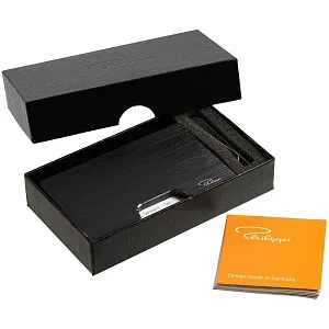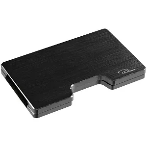 Две части футляра с RFID-защитой соединены резинкой, что позволяет использовать его для большого количества карт. Футляр вмещает до 25 пластиковых карт или до 70 визиток.