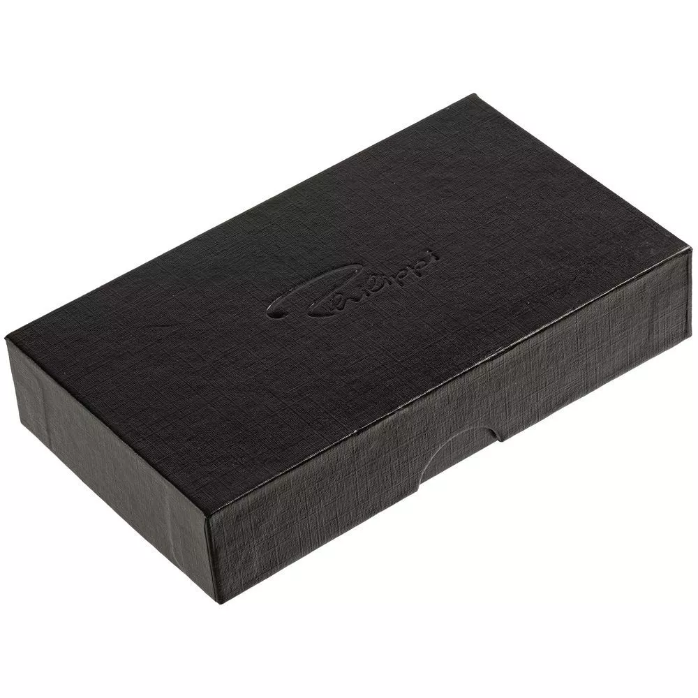 Две части футляра с RFID-защитой соединены резинкой, что позволяет использовать его для большого количества карт. Футляр вмещает до 25 пластиковых карт или до 70 визиток.