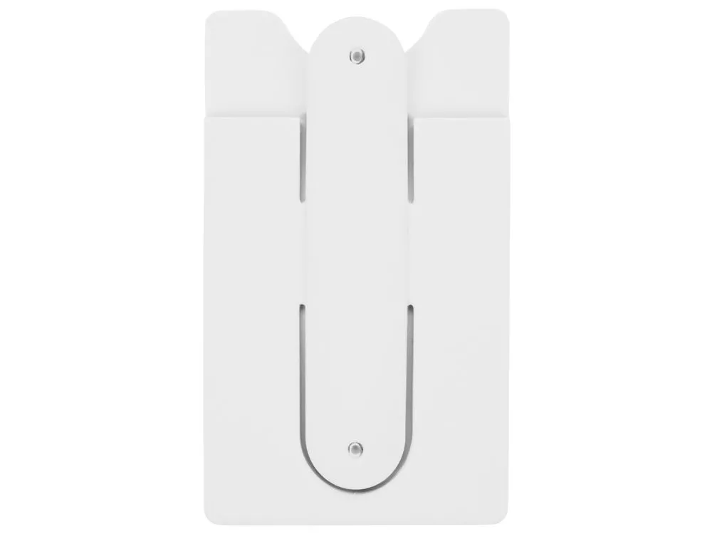 Чехол для визиток и кредитных карт с функцией подставки. За счет клейкой основы прикрепляется к обратной стороне телефона или любой другой плоской поверхности.