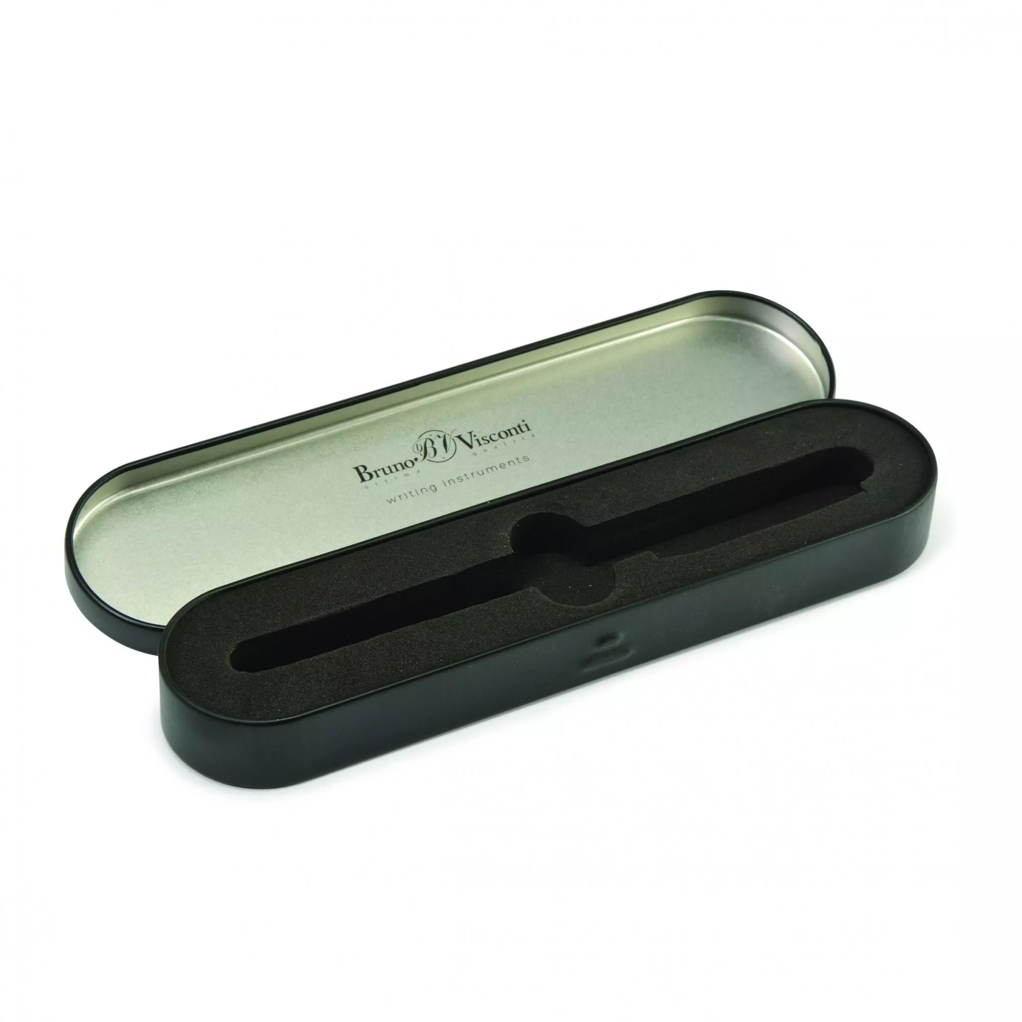 Футляр для ручек BrunoVisconti изготовлен из металла, цвет классический черный, подходит для моделей ручек VERONA, SIENNA, MILANO.