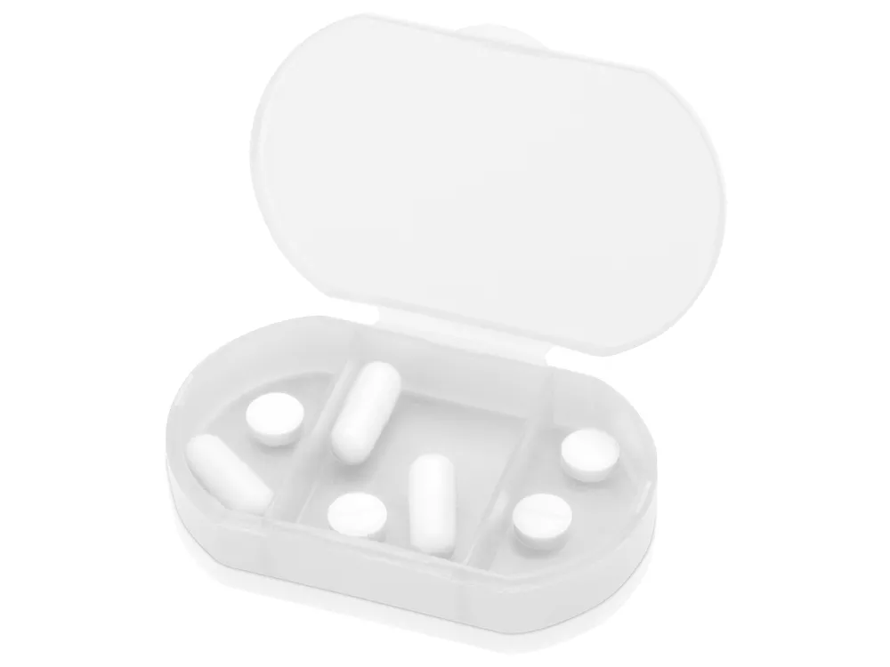 Компактный футляр для витаминов и таблеток выполнен из прочного пластика и имеет три отделения. С таким футляром очень удобно распределять время приема необходимых лекарств на утро, день и вечер.