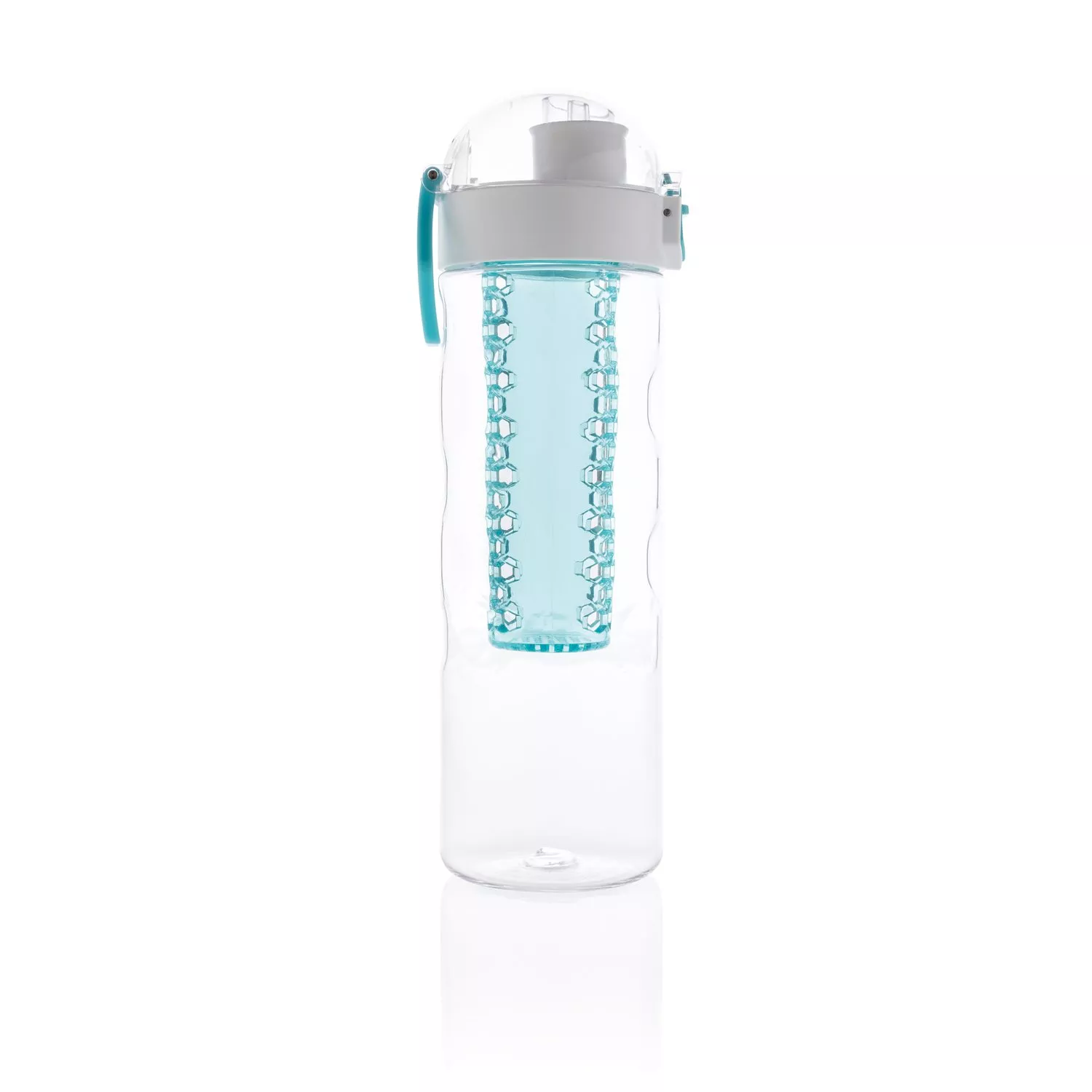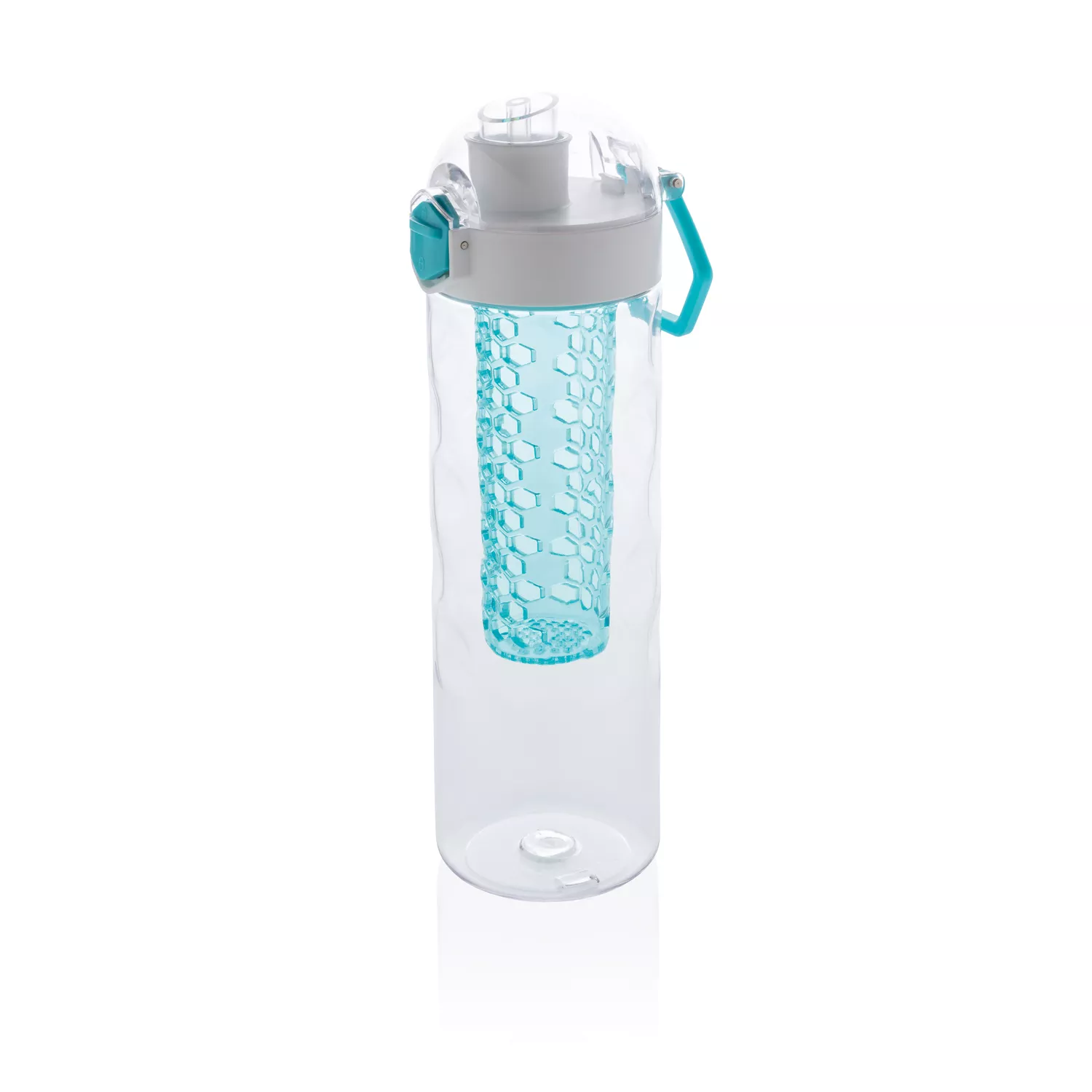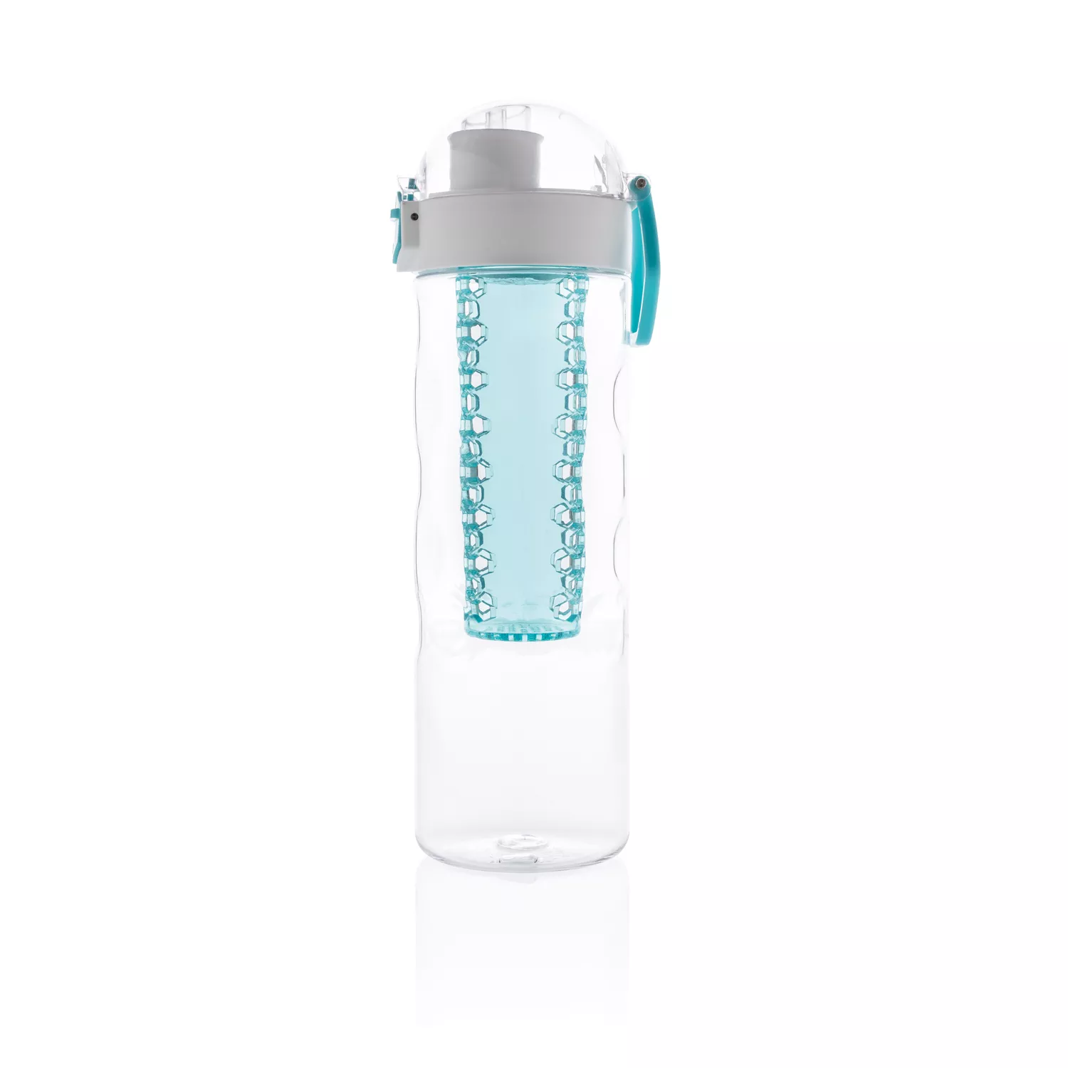Пейте еще более вкусную и полезную воду, добавив в нее фрукты! Когда вы пьете из этой стильной бутылки, одна ваша рука остается свободной. Крышка открывается легким нажатием на кнопку, на которой предусмотрен специальный механизм блокировки, исключающий случайное нажатие. На бутылке предусмотрена удобная ручка для переноски. Эта бутылка с контейнером для фруктов изготовлена из прочного инновационного материала Tritan, который не впитывает запахи и не содержит BPA. Объем 700мл. Зарегистрированный дизайн®
