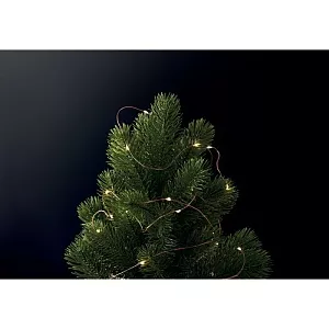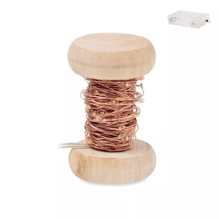 Гирлянда из 50 светодиодных лампочек теплого желтого оттенка на деревянной катушке. Длина: 5 м. 3 батарейки типа АА в комплект не входят.