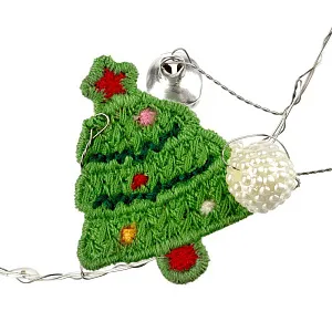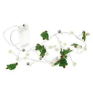 10 елочек, бусины и 20 лампочек с теплым светом. Работает от 2 батареек АА (в комплект не входят).