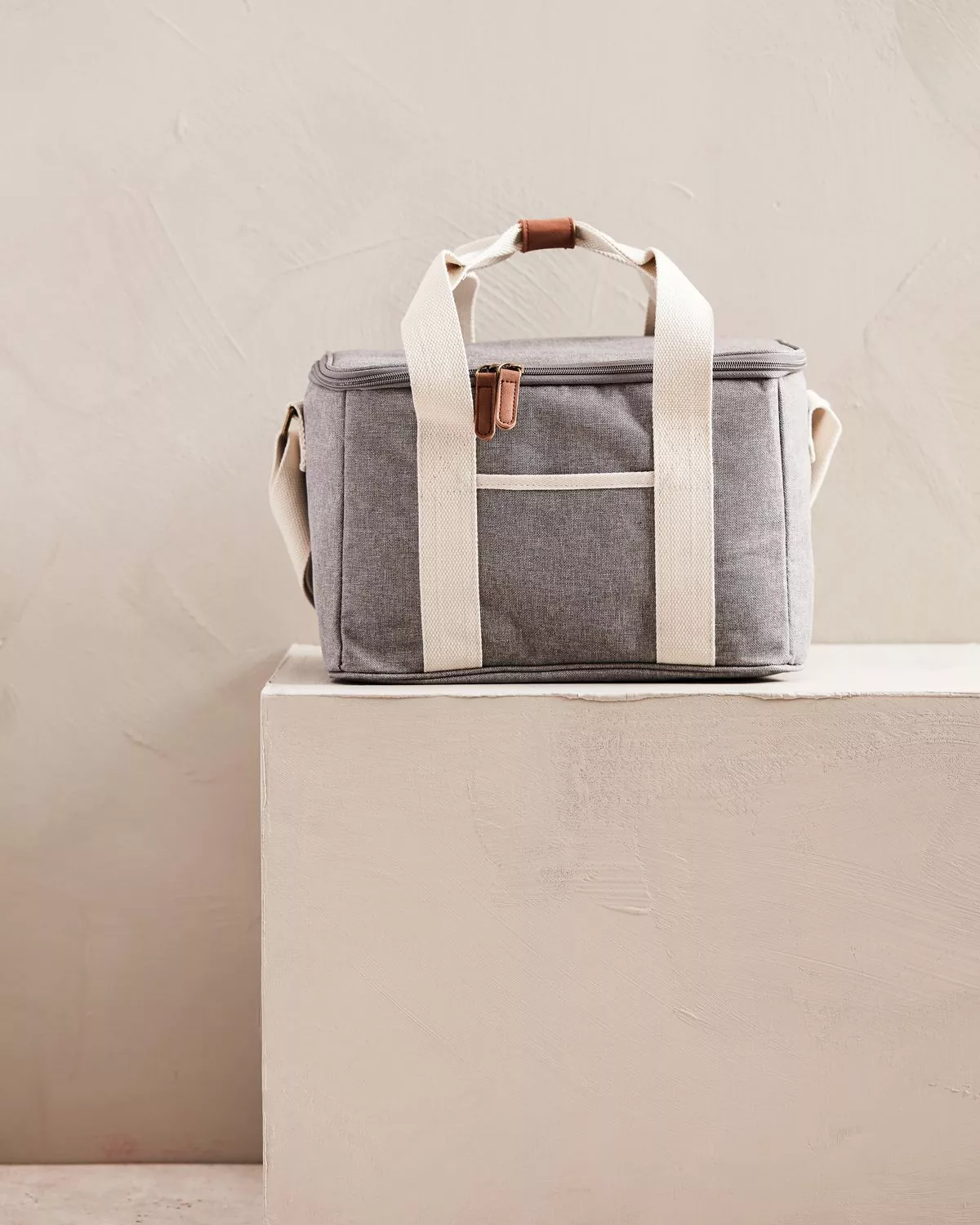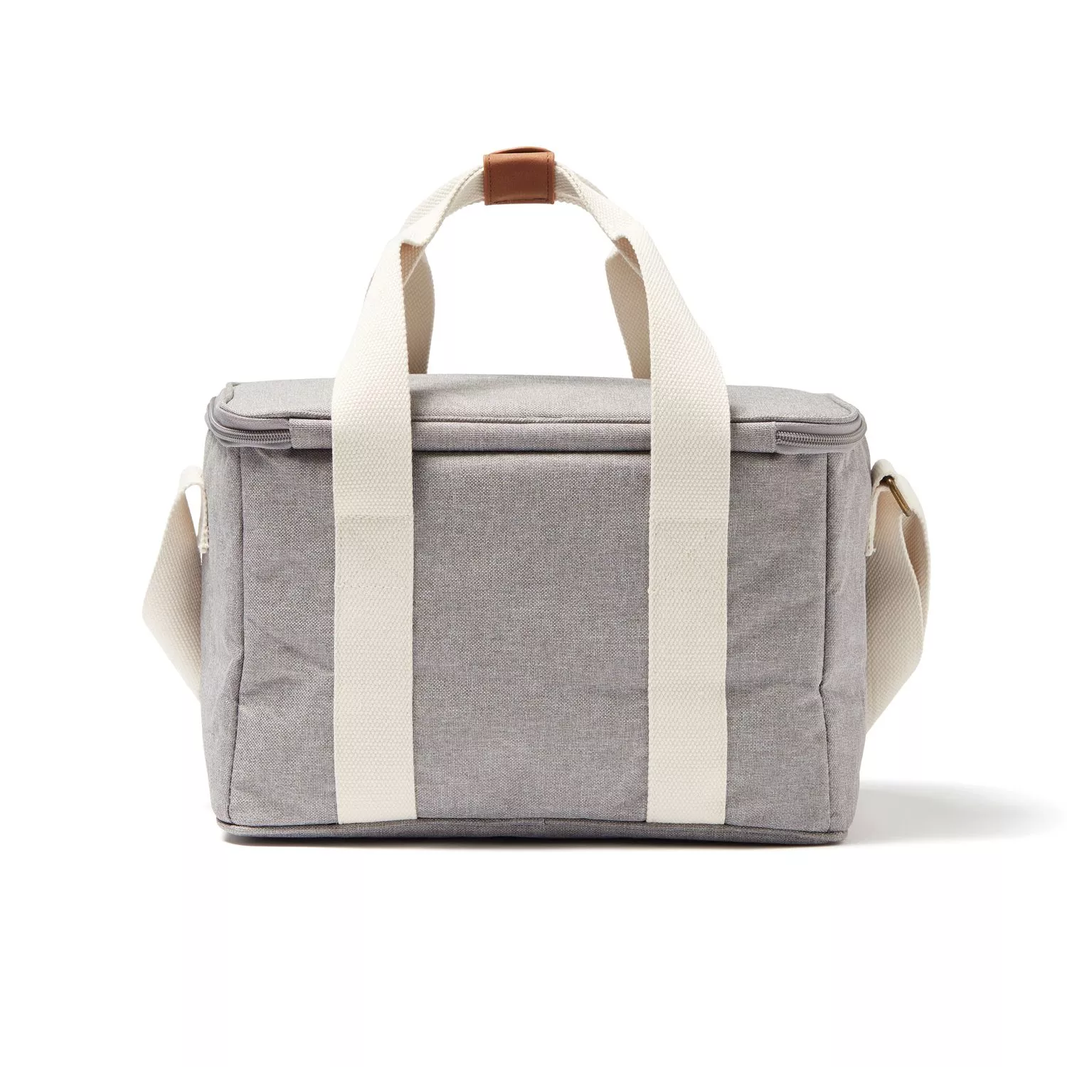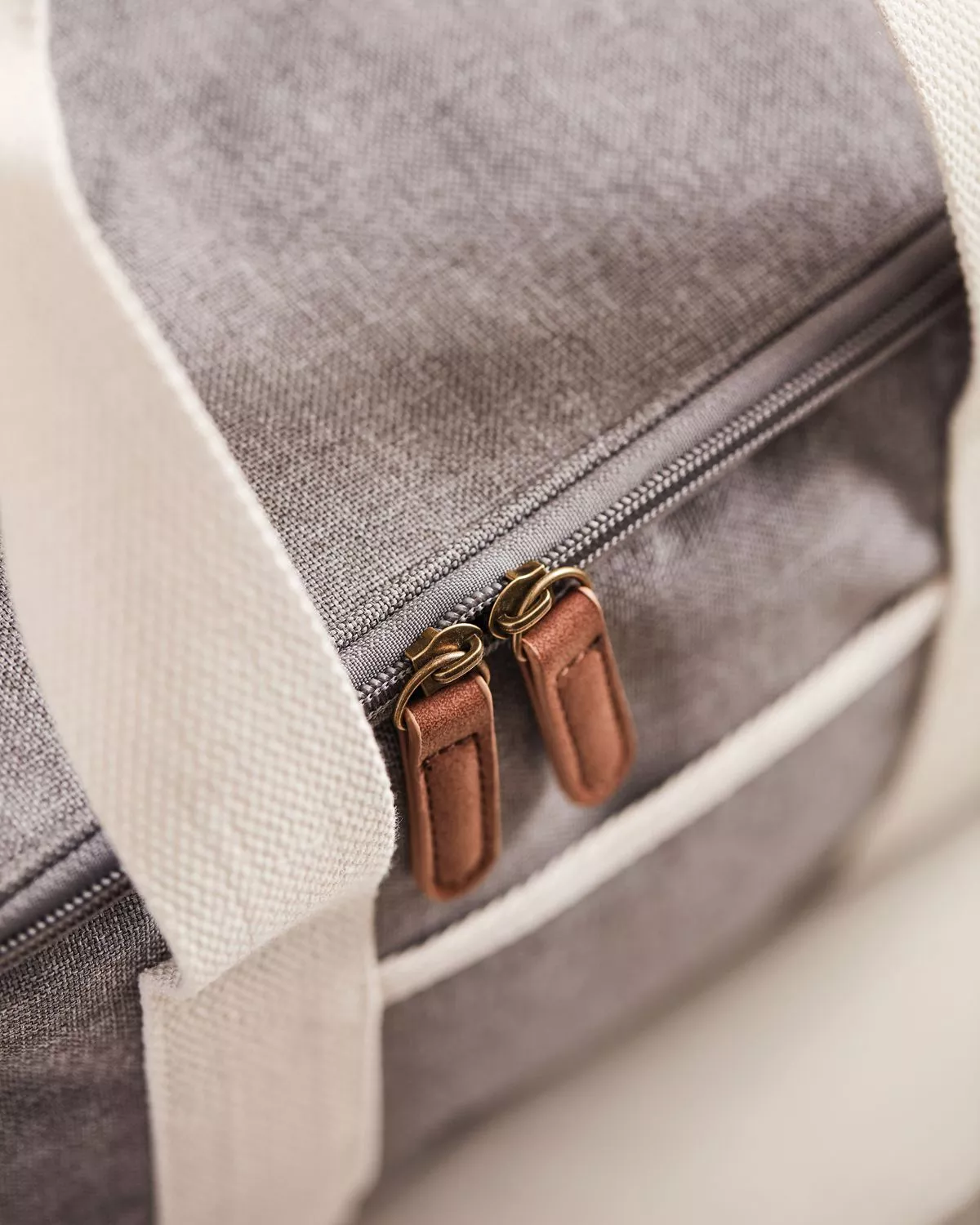 Это универсальная сумка-холодильник с контрастными деталями на 50% изготовлена из rPET, переработанных пластиковых бутылок. Снаружи есть небольшое отделение для важных мелочей. Благодаря плотному подкладу из PEVA сумка легко моется и долго сохраняет холод. Есть регулируемый плечевой ремень и короткие ручки.