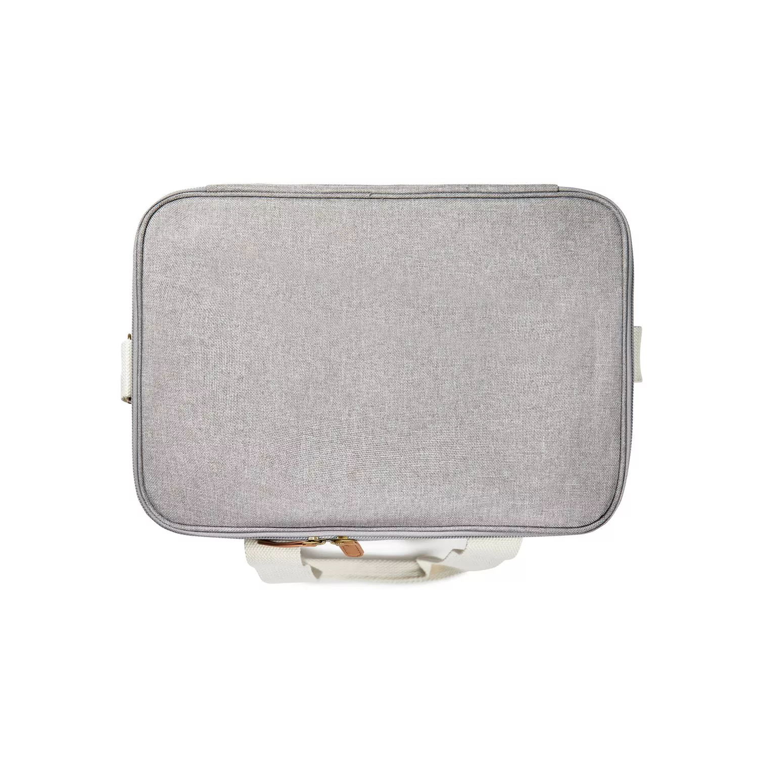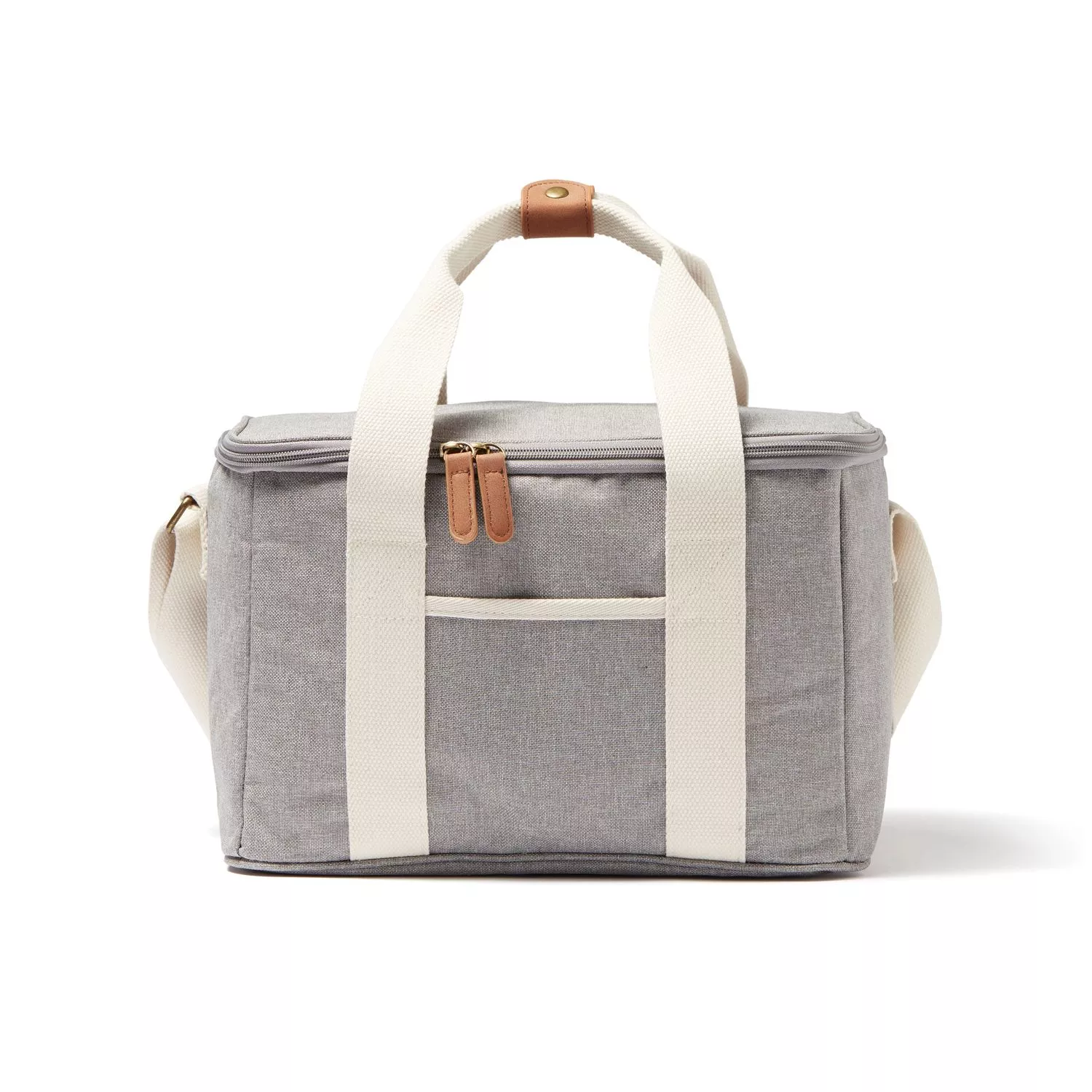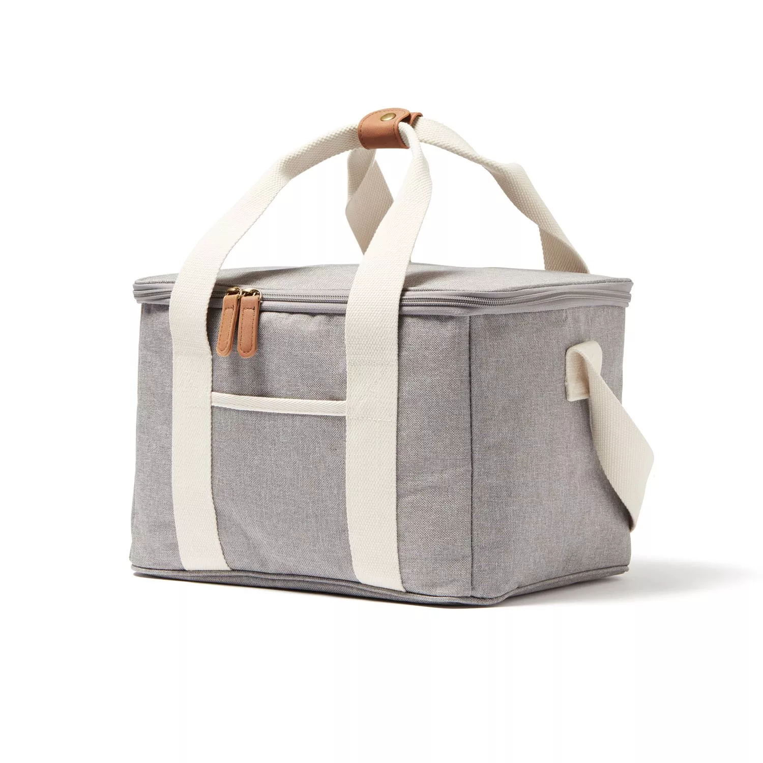 Это универсальная сумка-холодильник с контрастными деталями на 50% изготовлена из rPET, переработанных пластиковых бутылок. Снаружи есть небольшое отделение для важных мелочей. Благодаря плотному подкладу из PEVA сумка легко моется и долго сохраняет холод. Есть регулируемый плечевой ремень и короткие ручки.