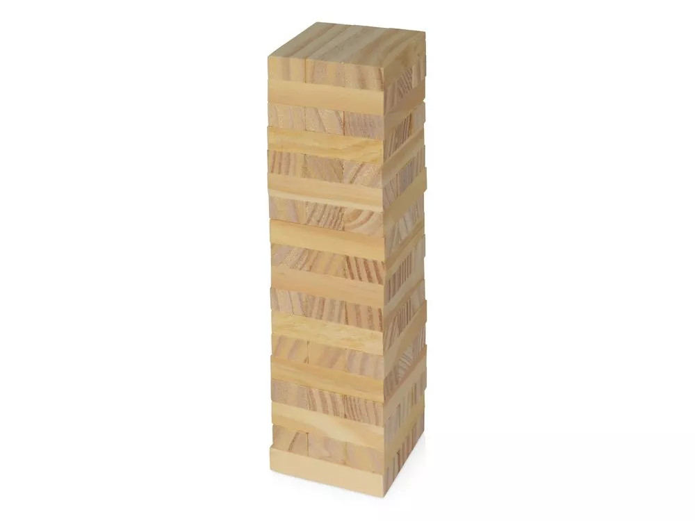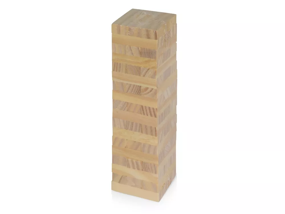 Набор для популярной игры Tower 54 состоит из 54 брусков, выполненных из дерева сосны и мешка из натурального хлопка. Игра не занимает много места: его удобно брать в путешествия и поездки. Задача участников состоит в том, чтобы по очереди доставать блоки из основания и перекладывать их в верхнюю часть башни. Игра Tower 54 поставляется в хлопковом мешочке, на котором будет удачно смотреться логотип компании.