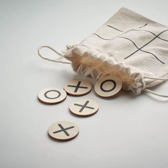 Деревянная игра в крестики-нолики. Поставляется в хлопковом мешочке.