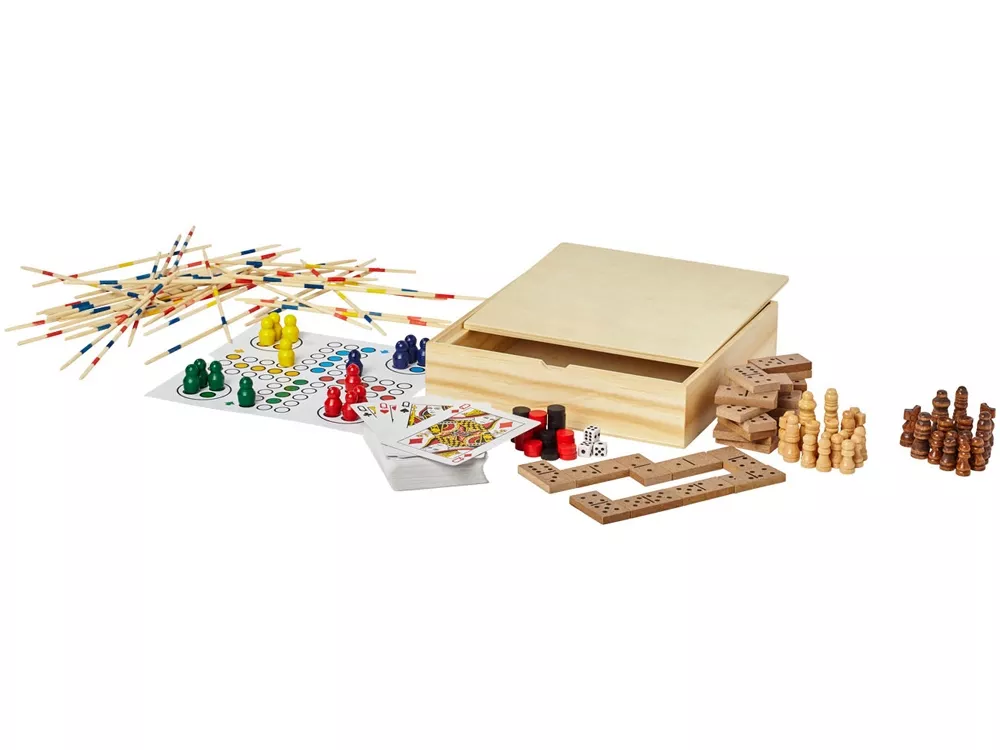 Игровой набор Monte Carlo. Деревянный чемоданчик, содержащий несколько игр: нарды, шахматы, шашки, домино, лудо, микадо и всевозможные карточные игры. Две боковые крышки с плоской поверхностью для нанесения и доска для шахмат и шашек сзади. Дополнительный вкладыш для лудо и нард. Инструкции прилагаются. Дерево. Гравировка (CO2 лазер) (Без чернения) на данный товар осуществляется бесплатно. Оплачивается только настройка оборудования в размере 1000 рублей на весь тираж.